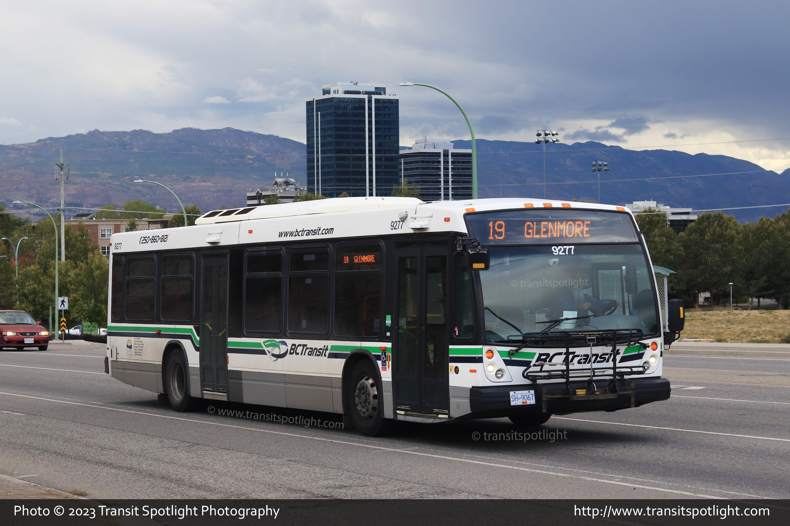9277, assigned to Kelowna Regional Transit System, is seen on Spall Road at Bernard Avenue while working Route 19 Glenmore. |