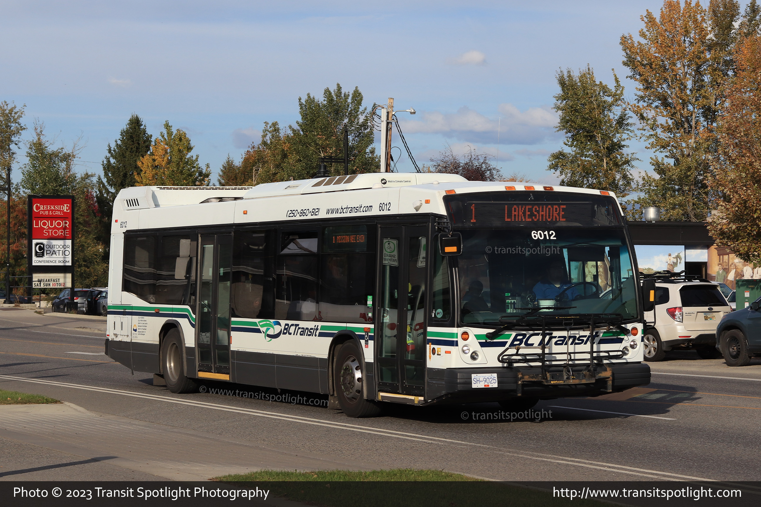 6012, assigned to Kelowna Regional Transit System, is seen on Lakeshore Road at Radant Road while working Route 1 Lakeshore. |