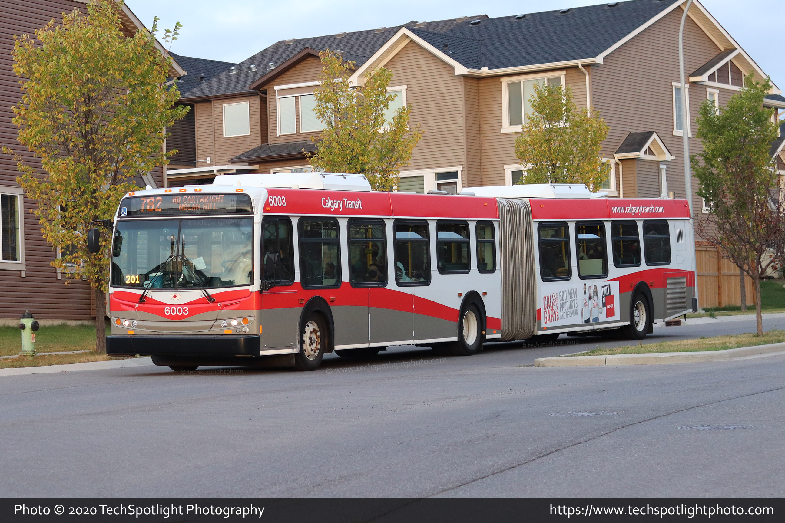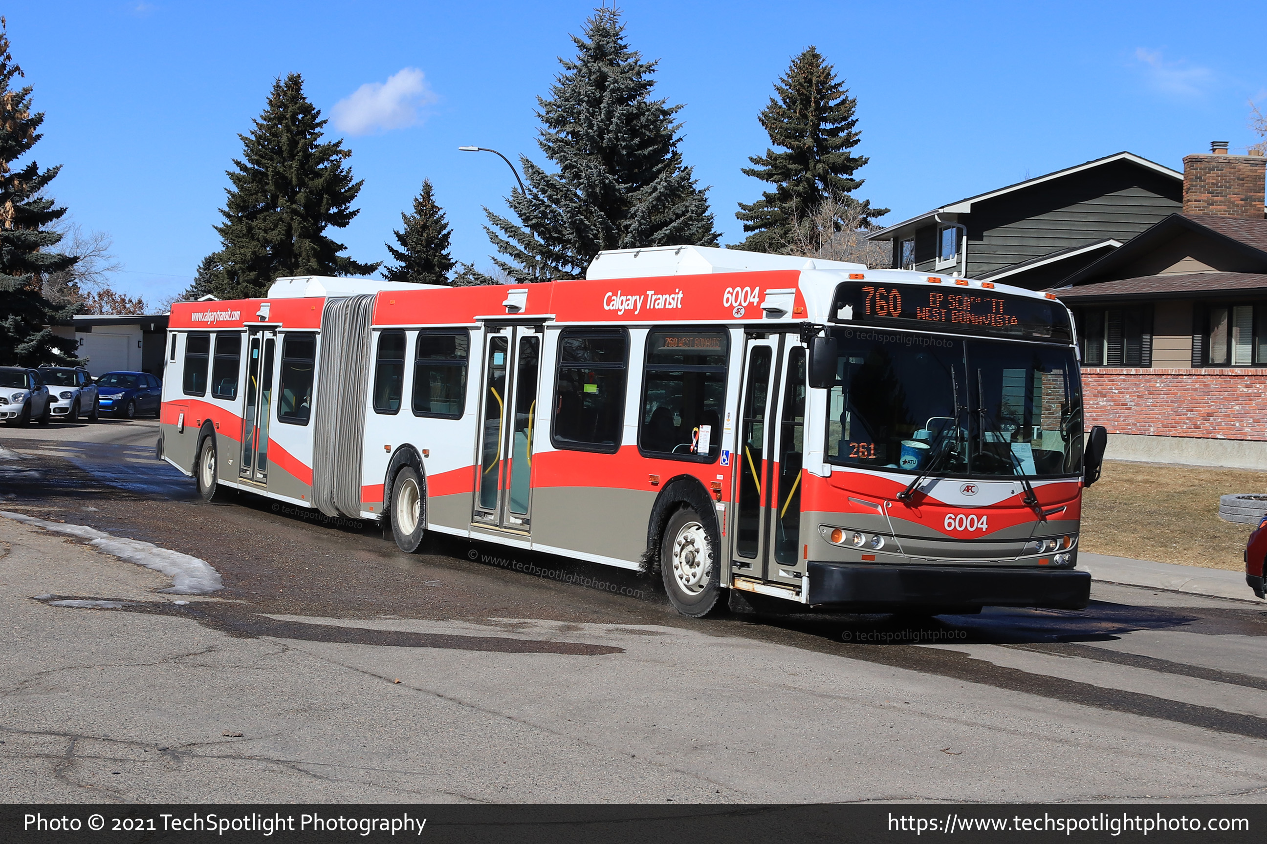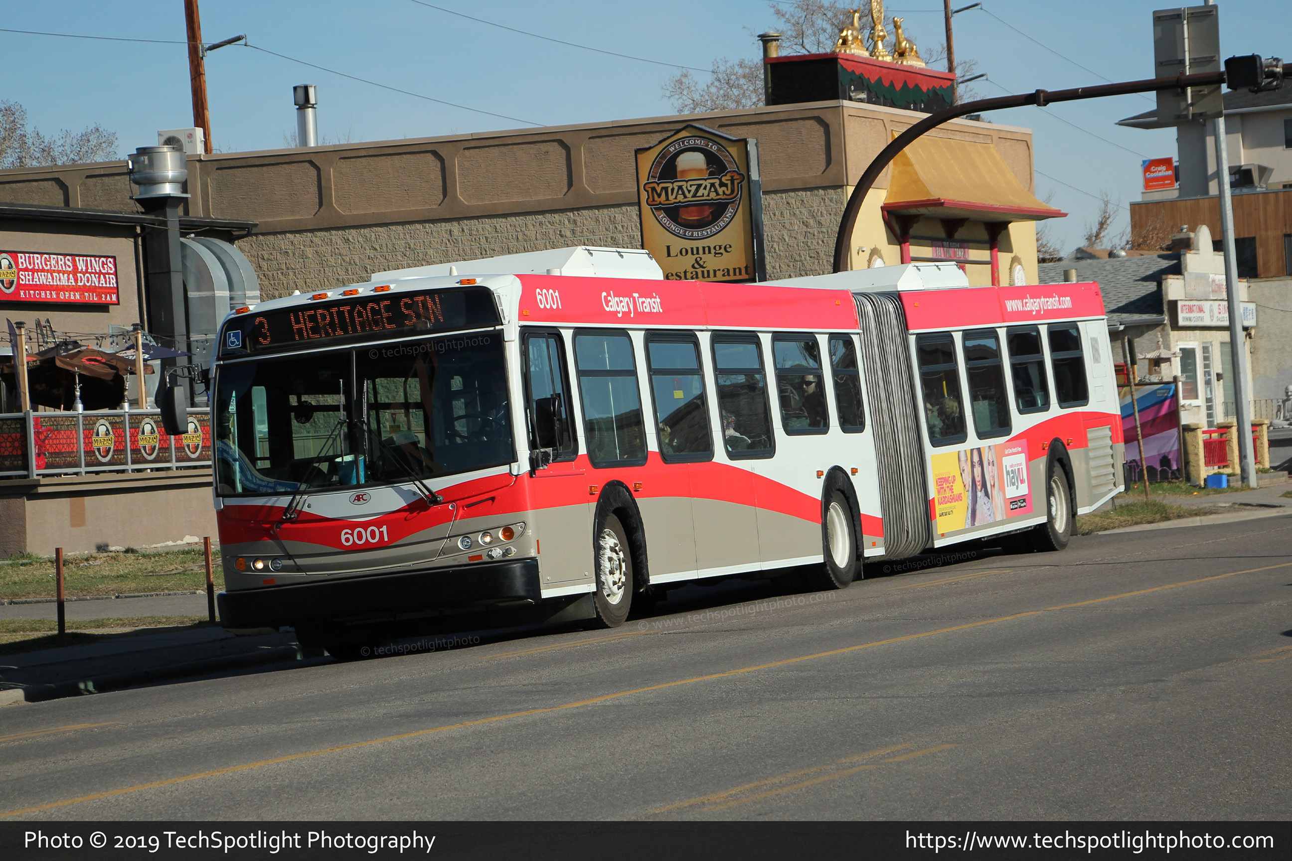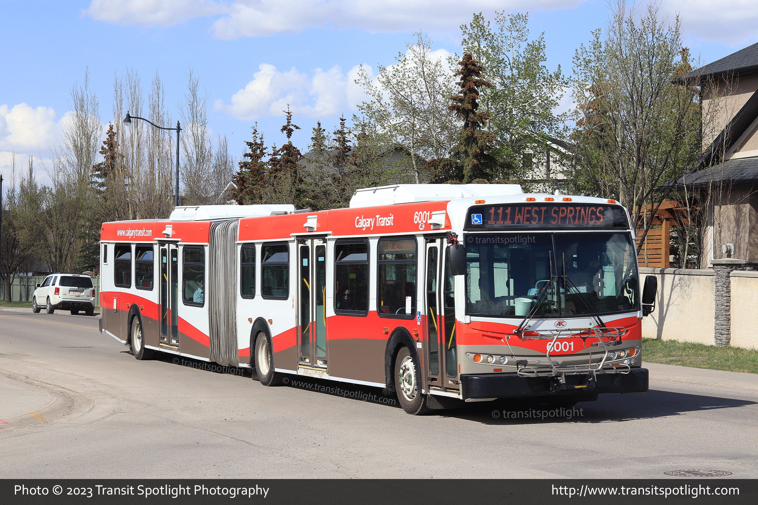 6001 is seen on 77 Street at Westpark Court SW while working Route 111 West Springs. |