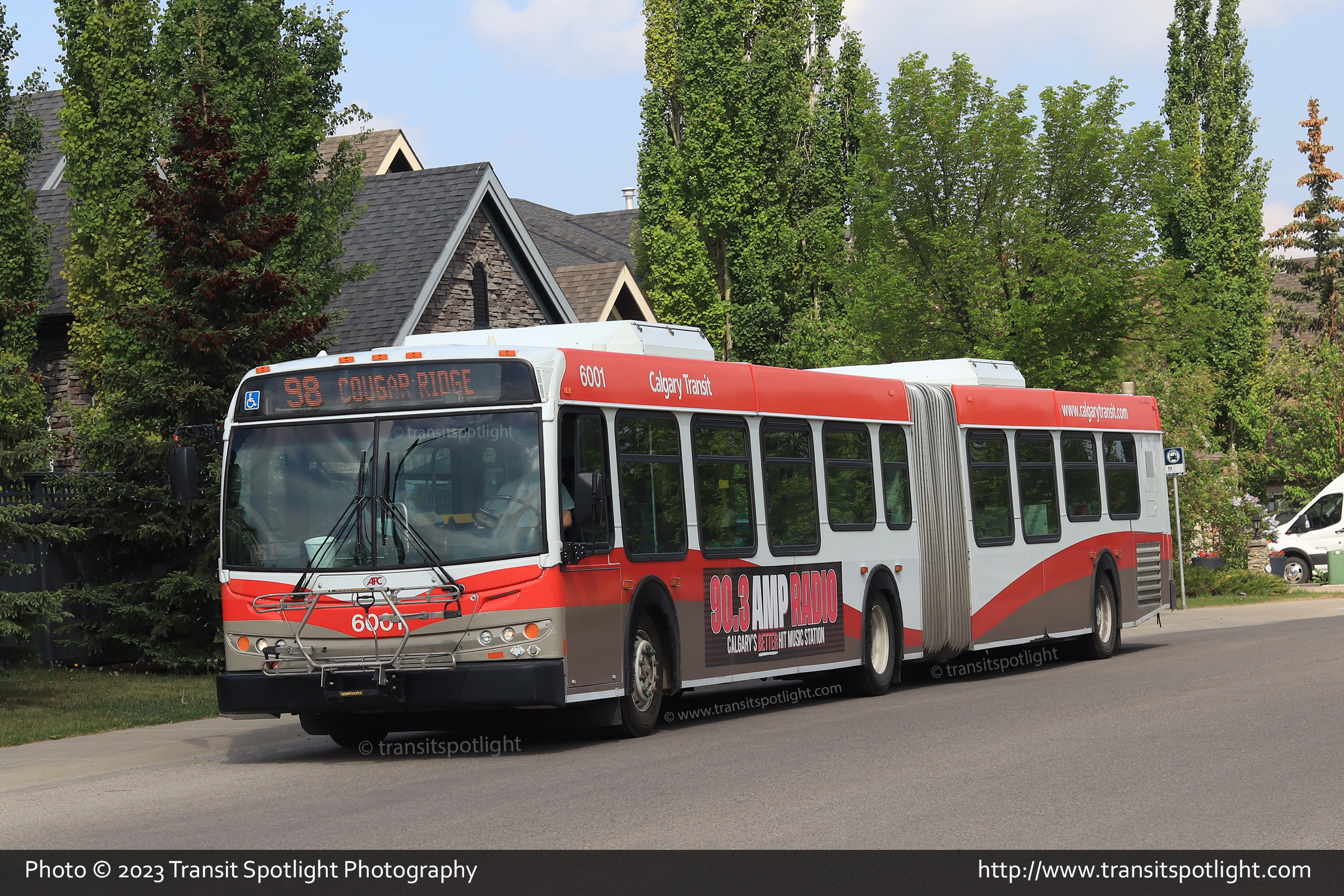 6001 is seen on Cougar Rige Drive at Cougartowne Close SW while working Route 98 Cougar Ridge. |