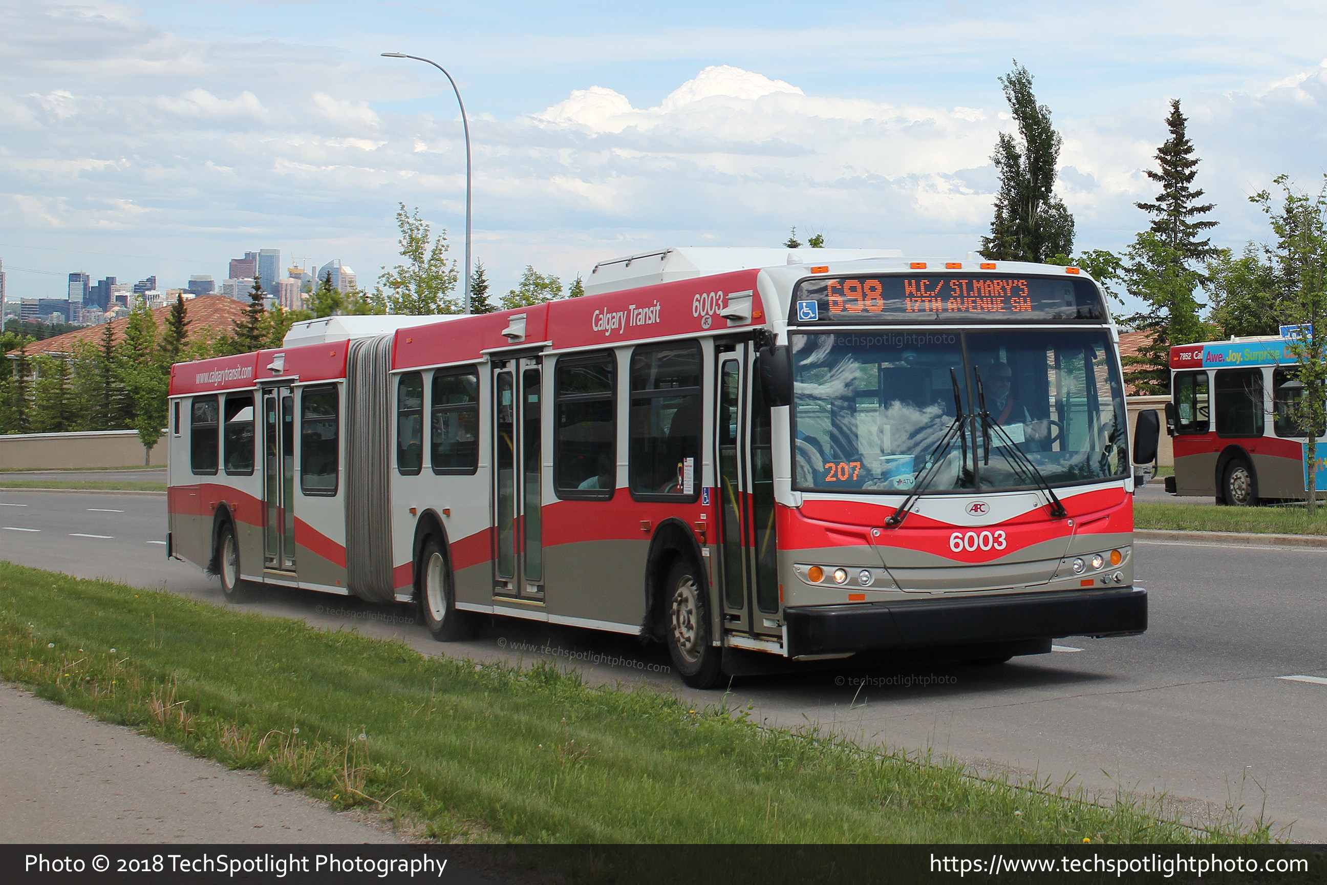 6003 is seen zooming down 17 Avenue SW, parallel to the West LRT tracks while working Route 698 Western Canada & St. Mary's / 17 Avenue SW. |