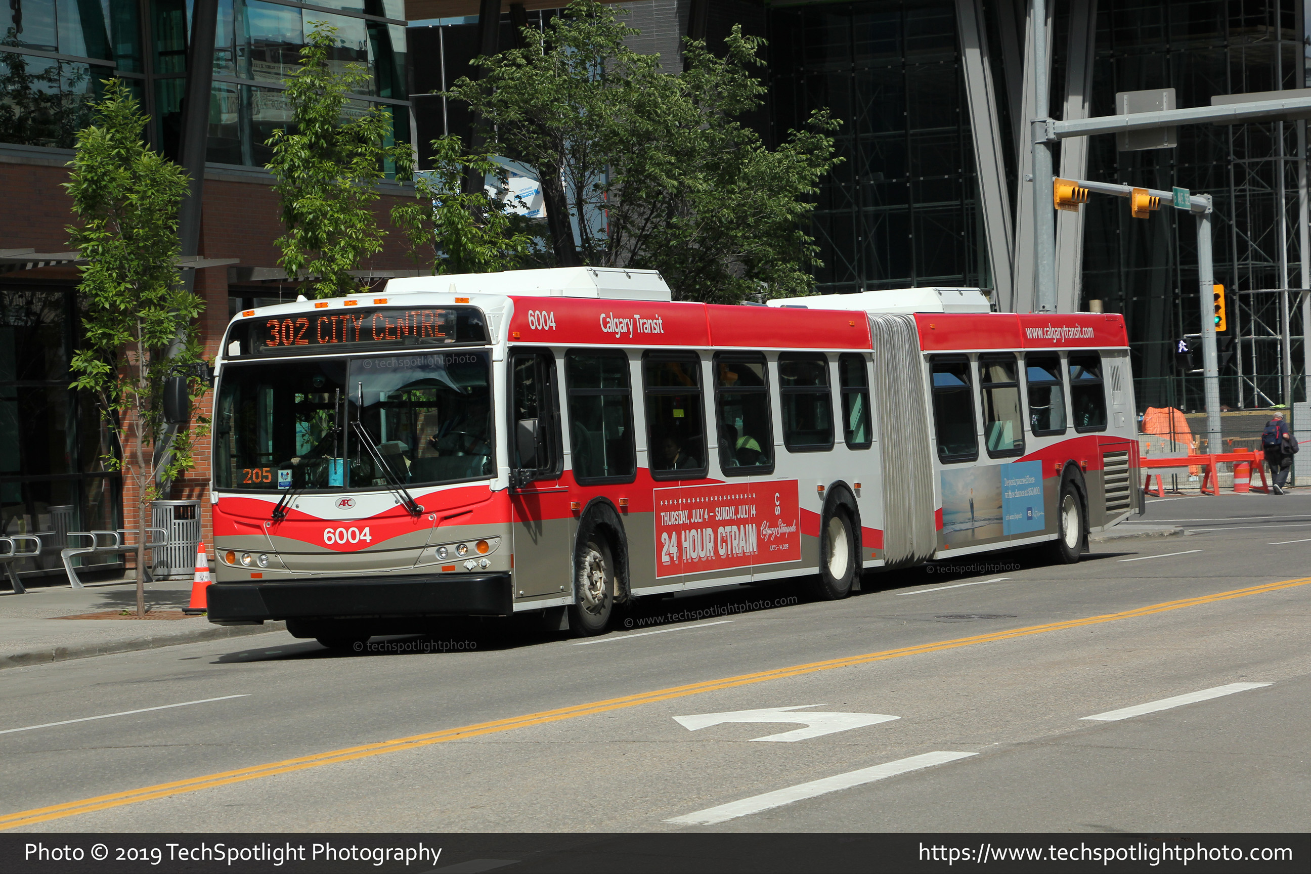 6004 is seen at 6 Avenue and 3 Street SE in the downtown core while working Route 302 BRT City Centre. |