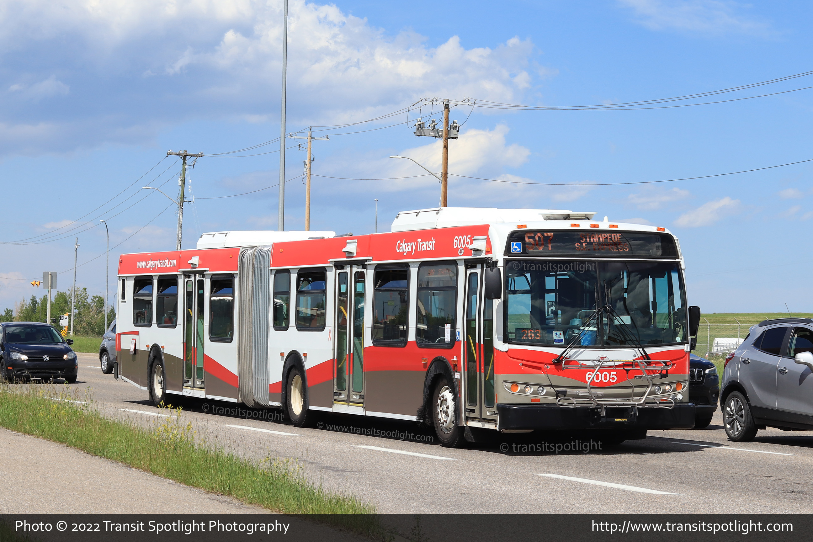 6005 is seen on 52 Street and south of 130 Avenue SE while working Route 507 Stampede SE Express. |