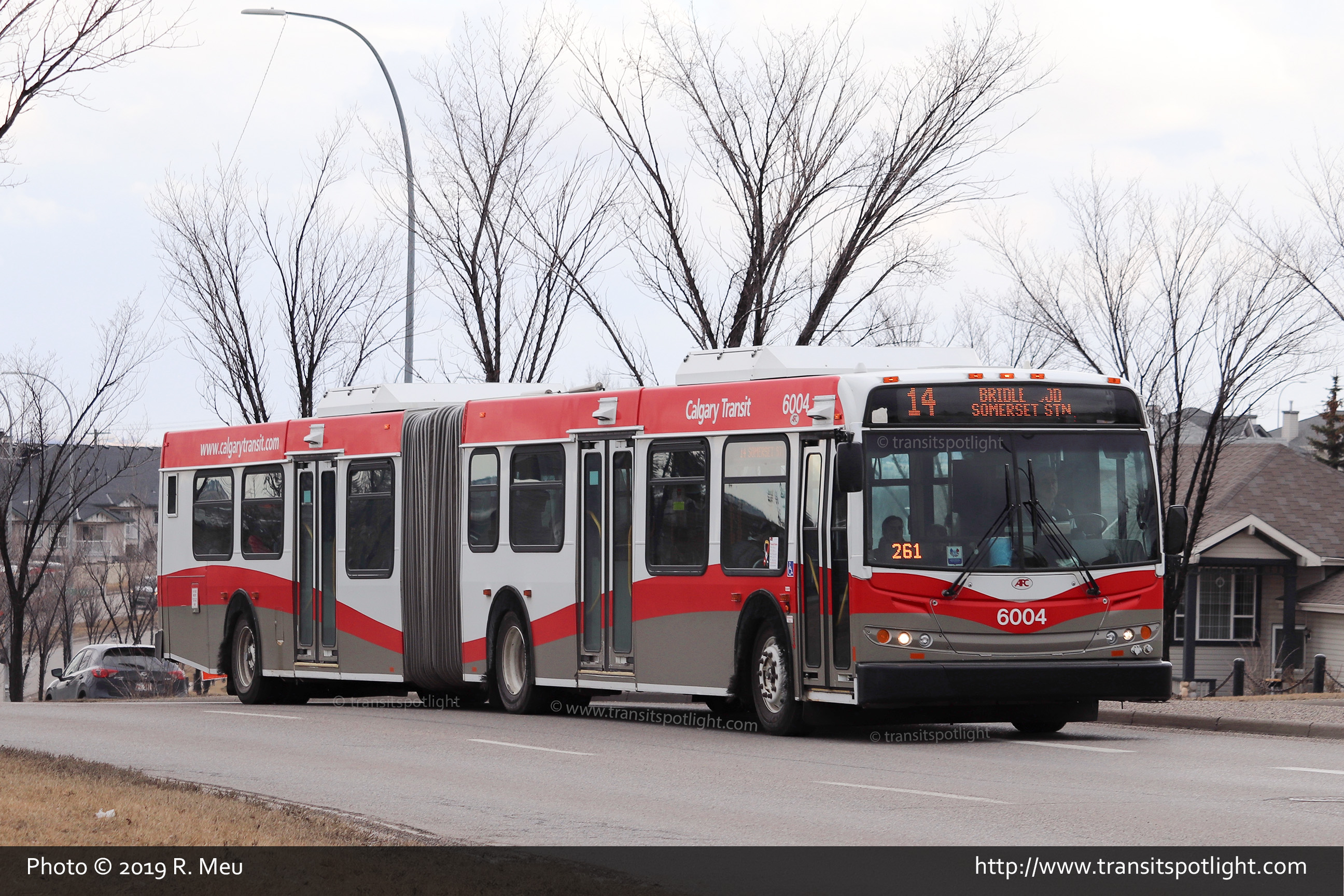 6004is seen on 6 Street at Somervale Drive SW while working Route 14 Bridlewood. |