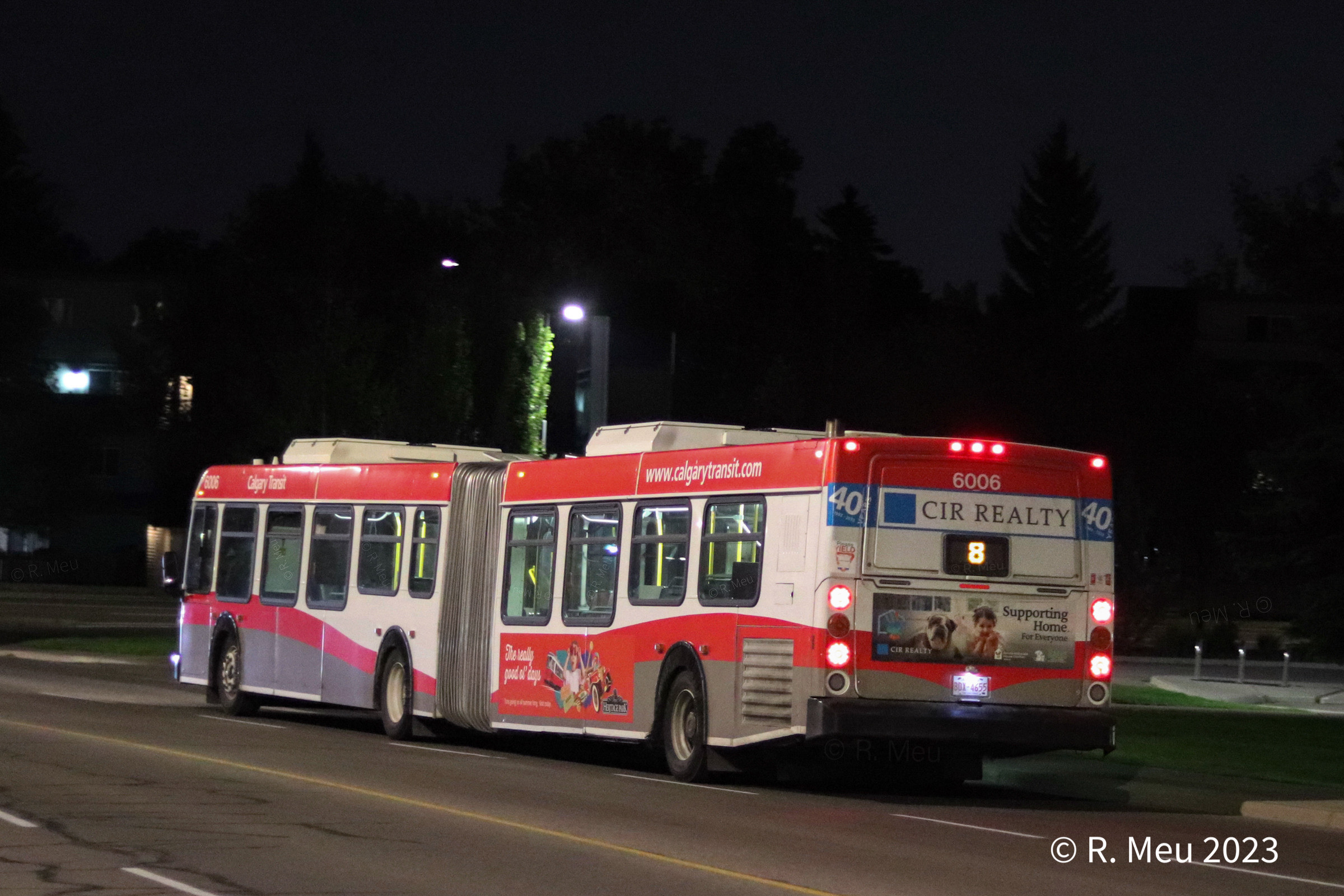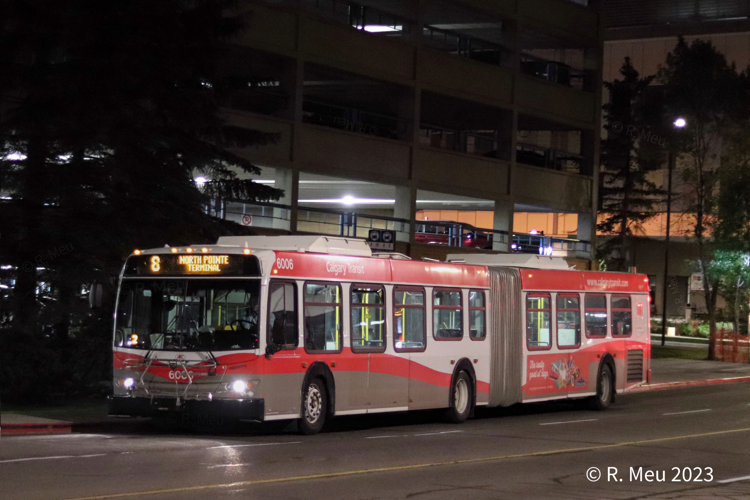 6006 is seen departing Foothills Medical Centre while working Route 8 to North Pointe Terminal. Photo captured by R. Meu. |