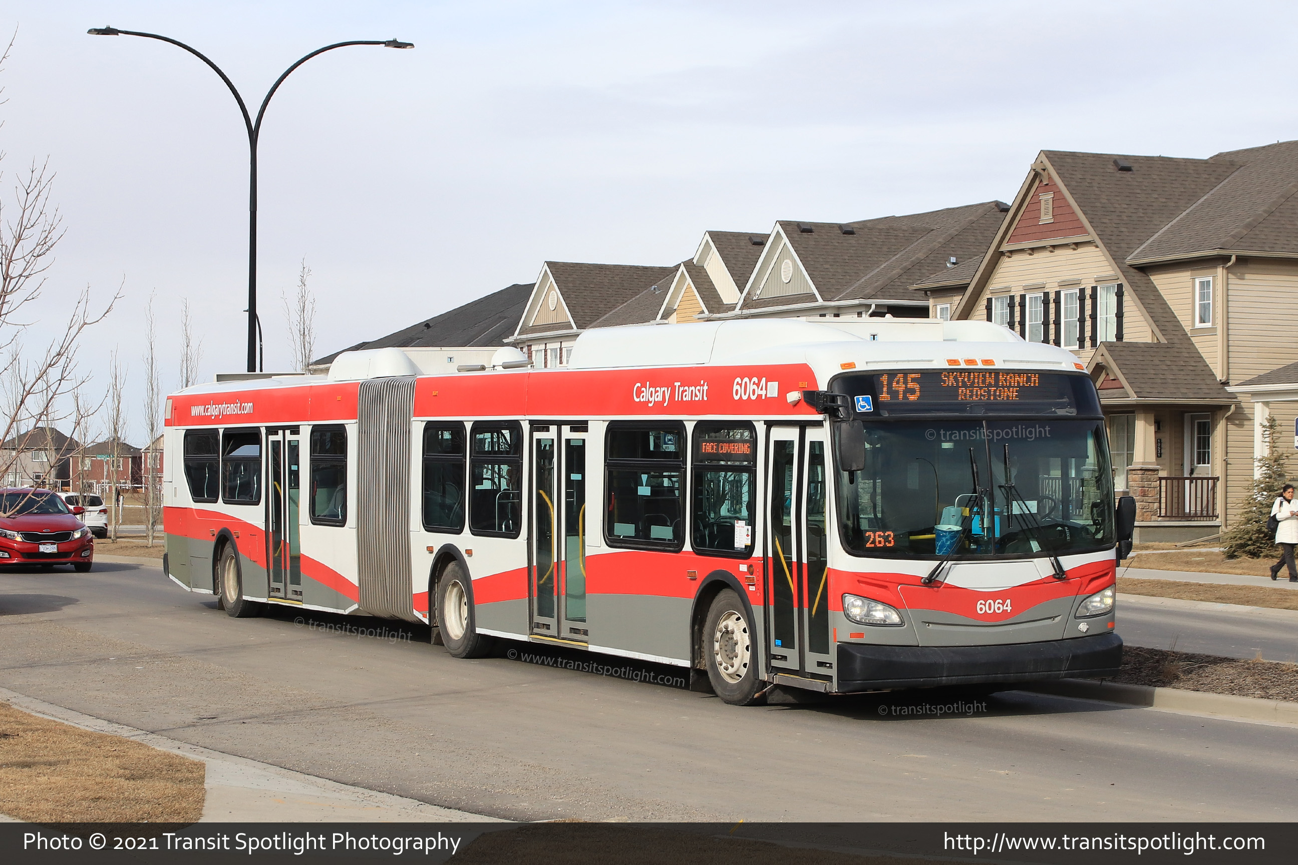 6064 is seen on Cityscape Drive at 104 Avenue NE while working Route 145 Skyview Ranch / Redstone. |