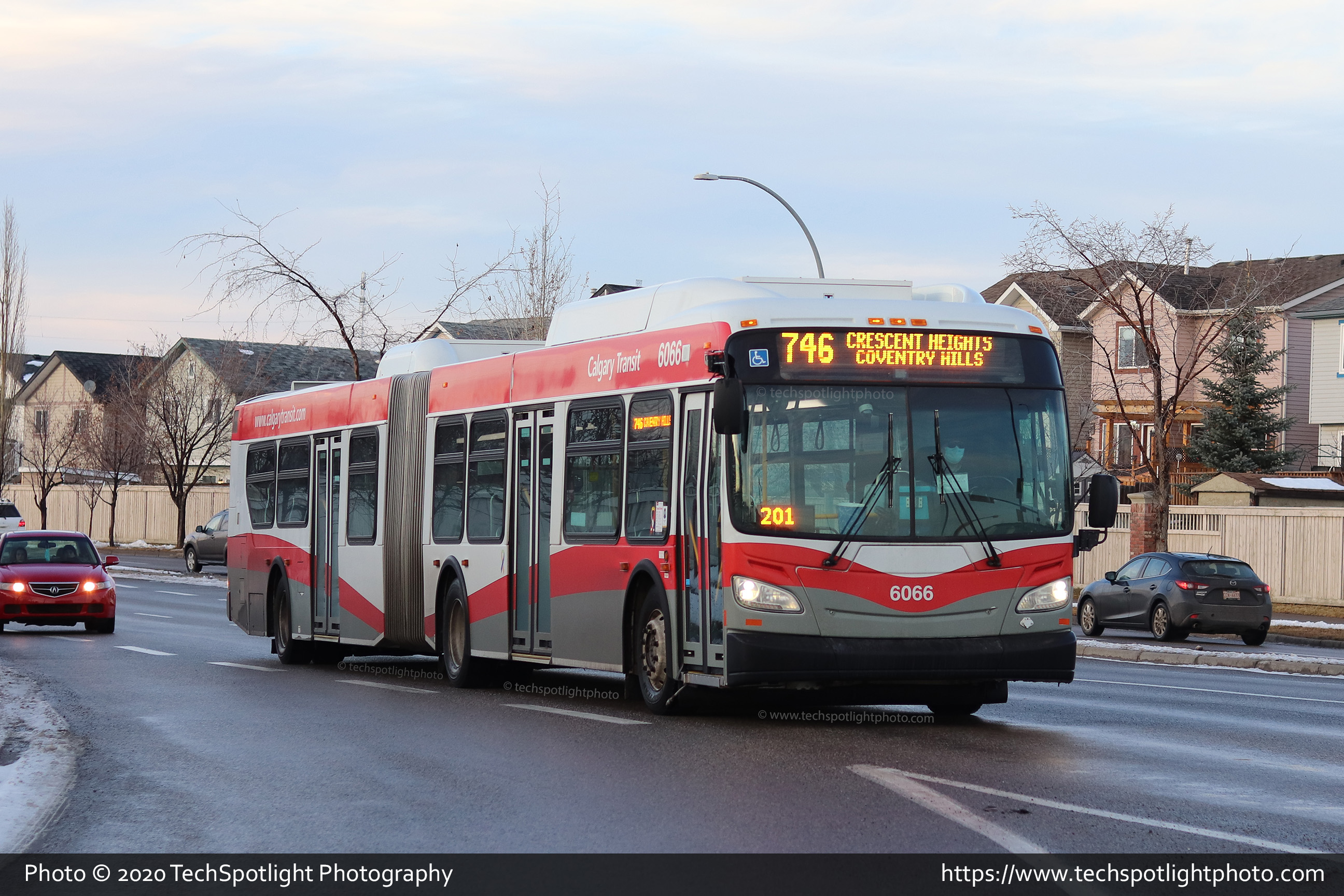 6066 is seen at Coventry Hills Way and Country Village Road NE while completing a trip on Route 746 Crescent Heights / Coventry Hills. |