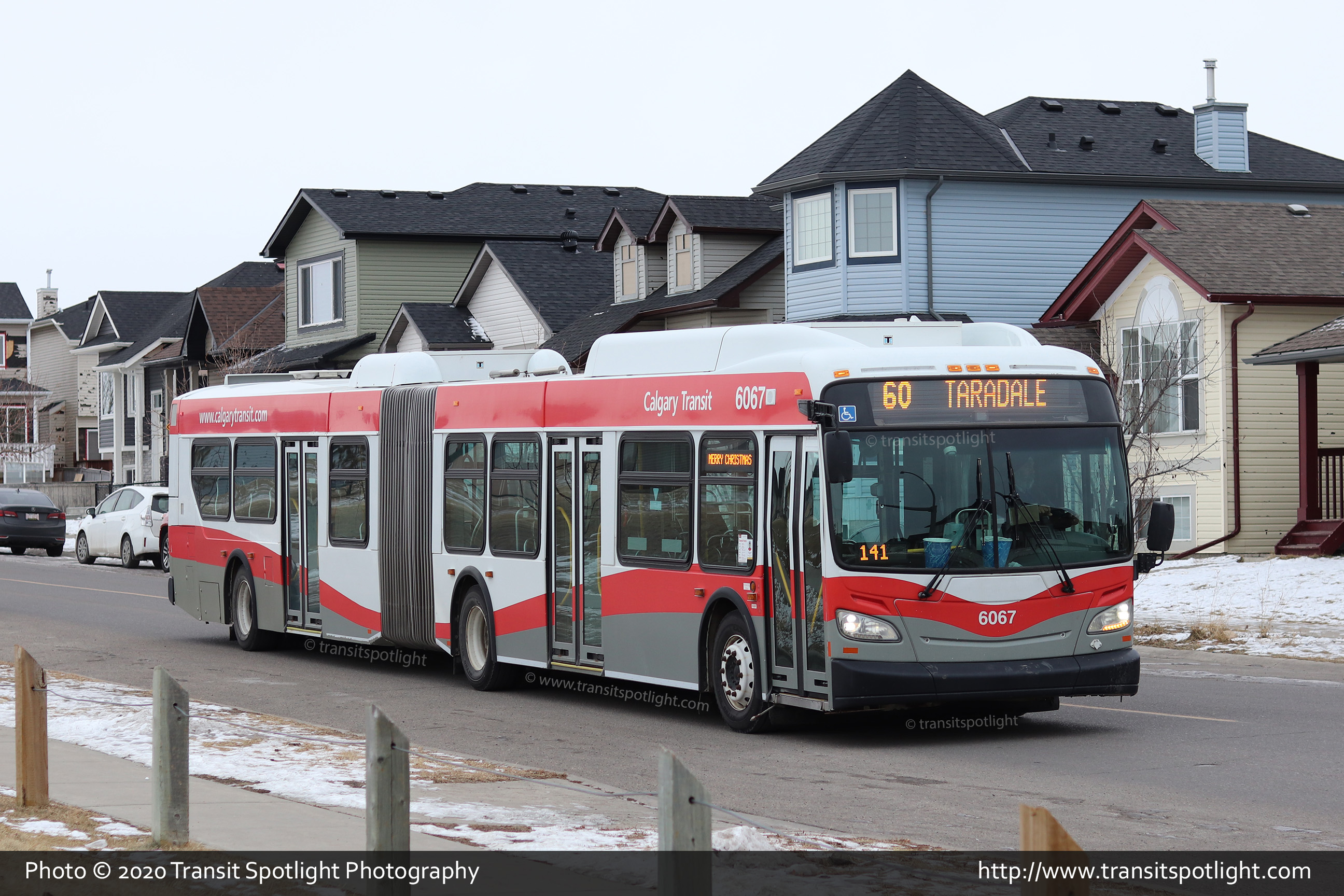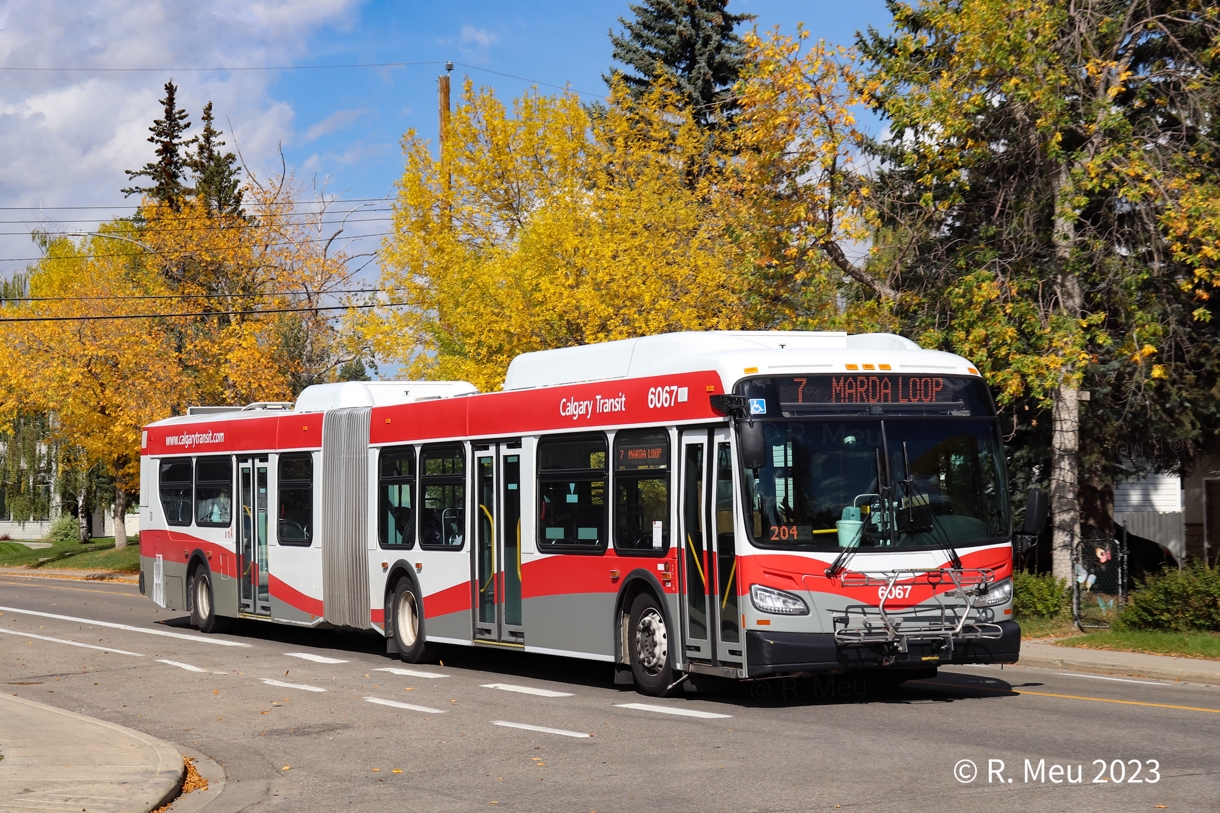 6067 is seen 20 Street at 53 Avenue SW while working Route 7 Marda Loop. Photo captured by R. Meu. |