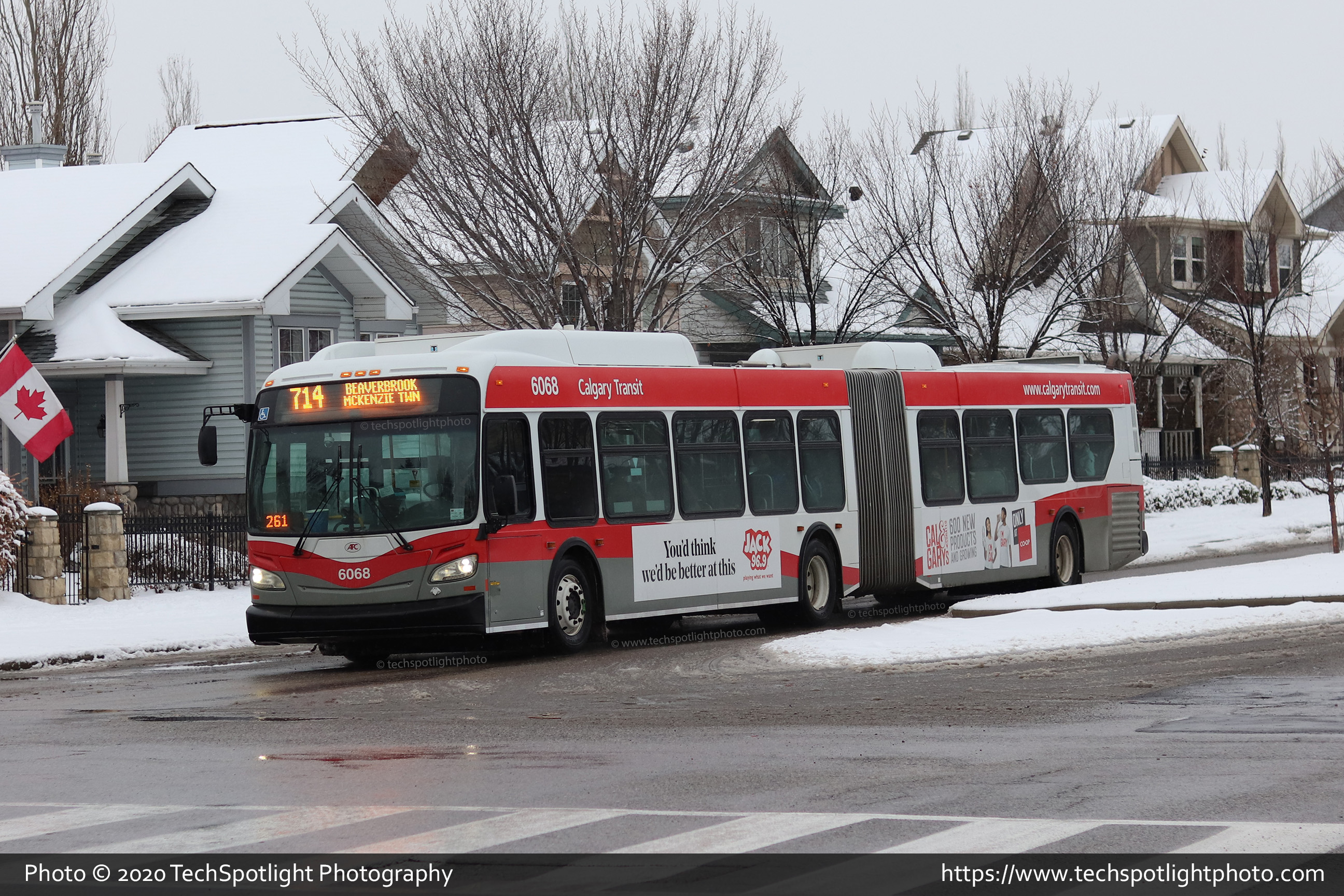 6068 is seen at Prestwick Blvd and Prestwick Circle SE while working Route 714 Lord Beaverbrook / McKenzie Towne. |