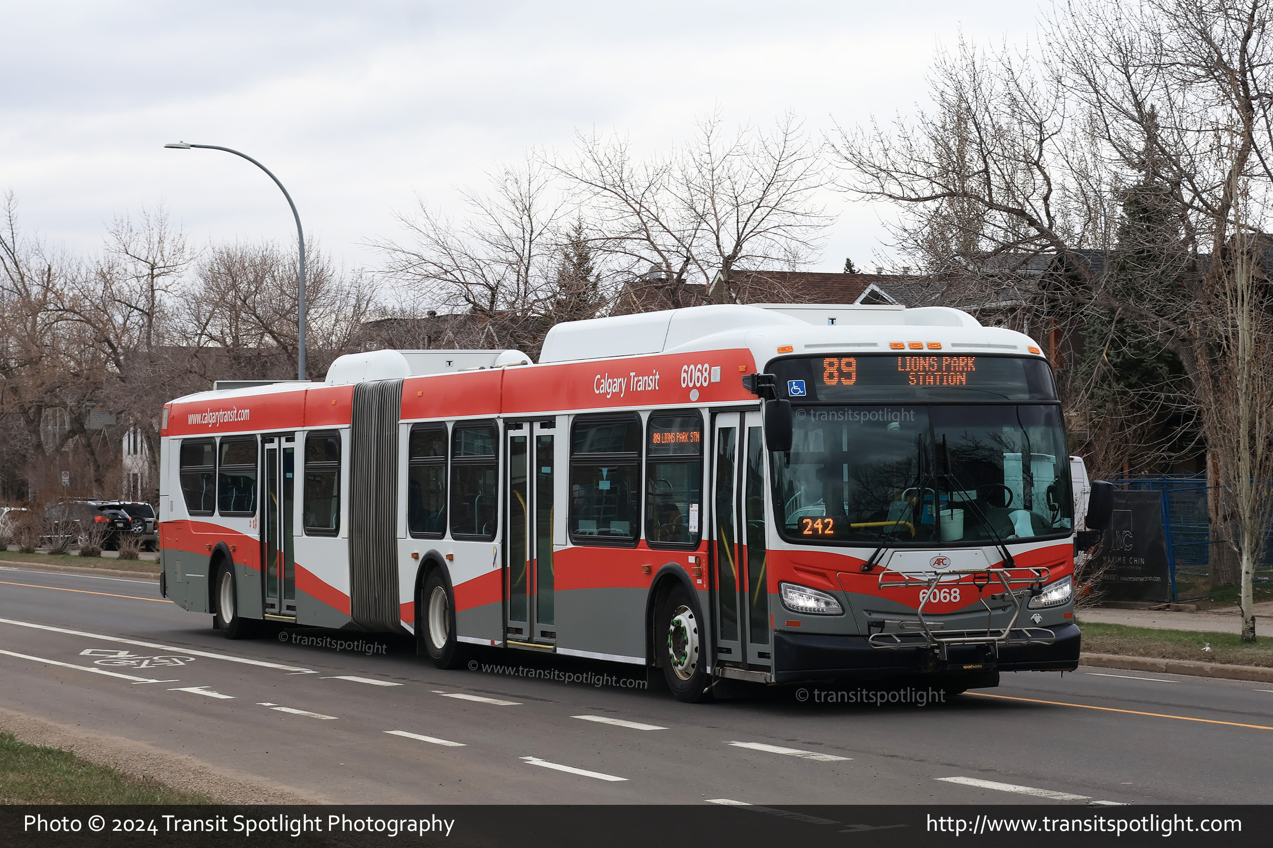 6068 is seen on 6 Avenue at 16a Street NW while working Route 89 to North Pointe Terminal. |
