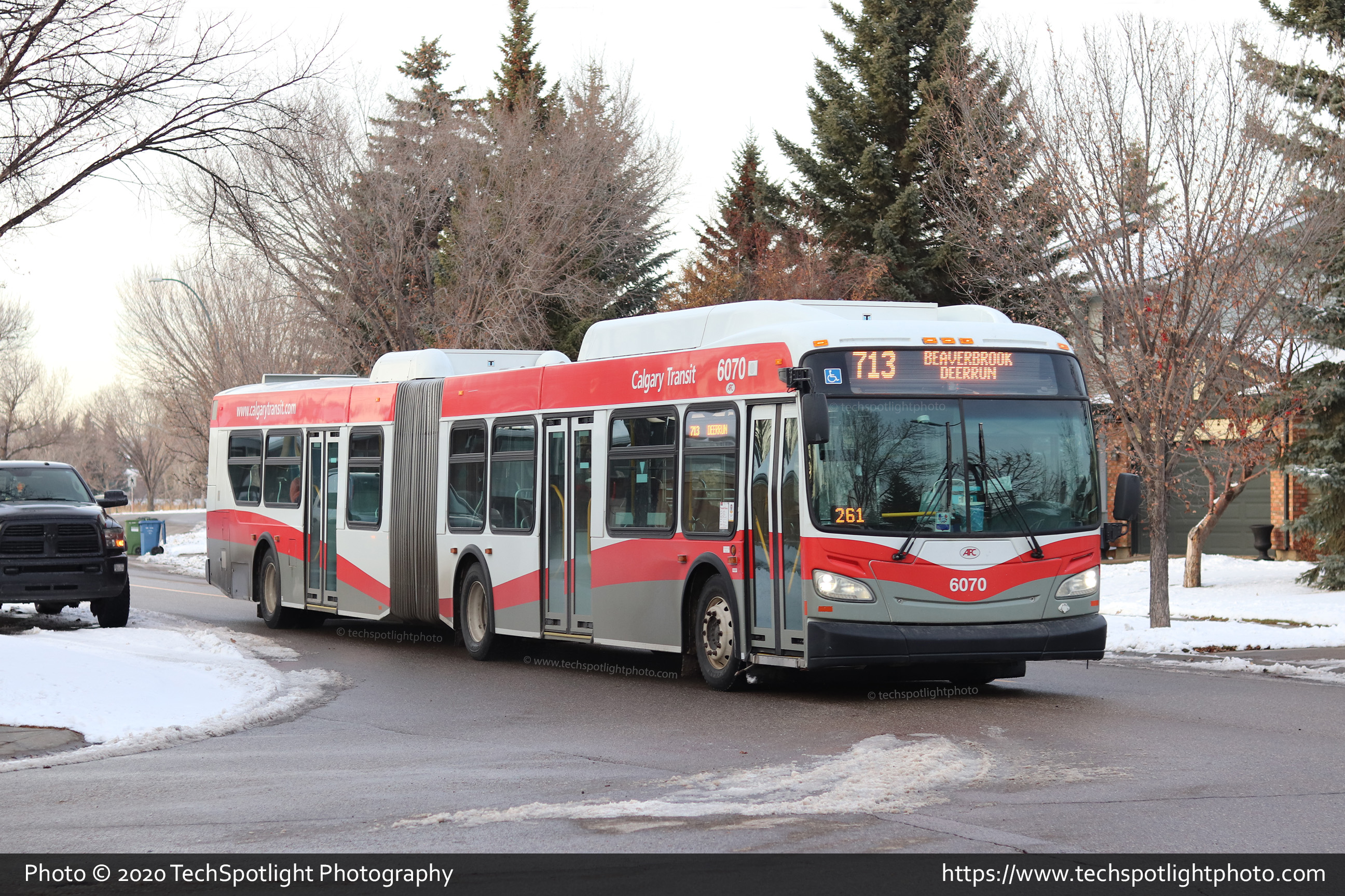 6070 is seen at Deer Run Blvd and 146 Avenue SE while working Route 713 Lord Beaverbrook / Deer Run. |