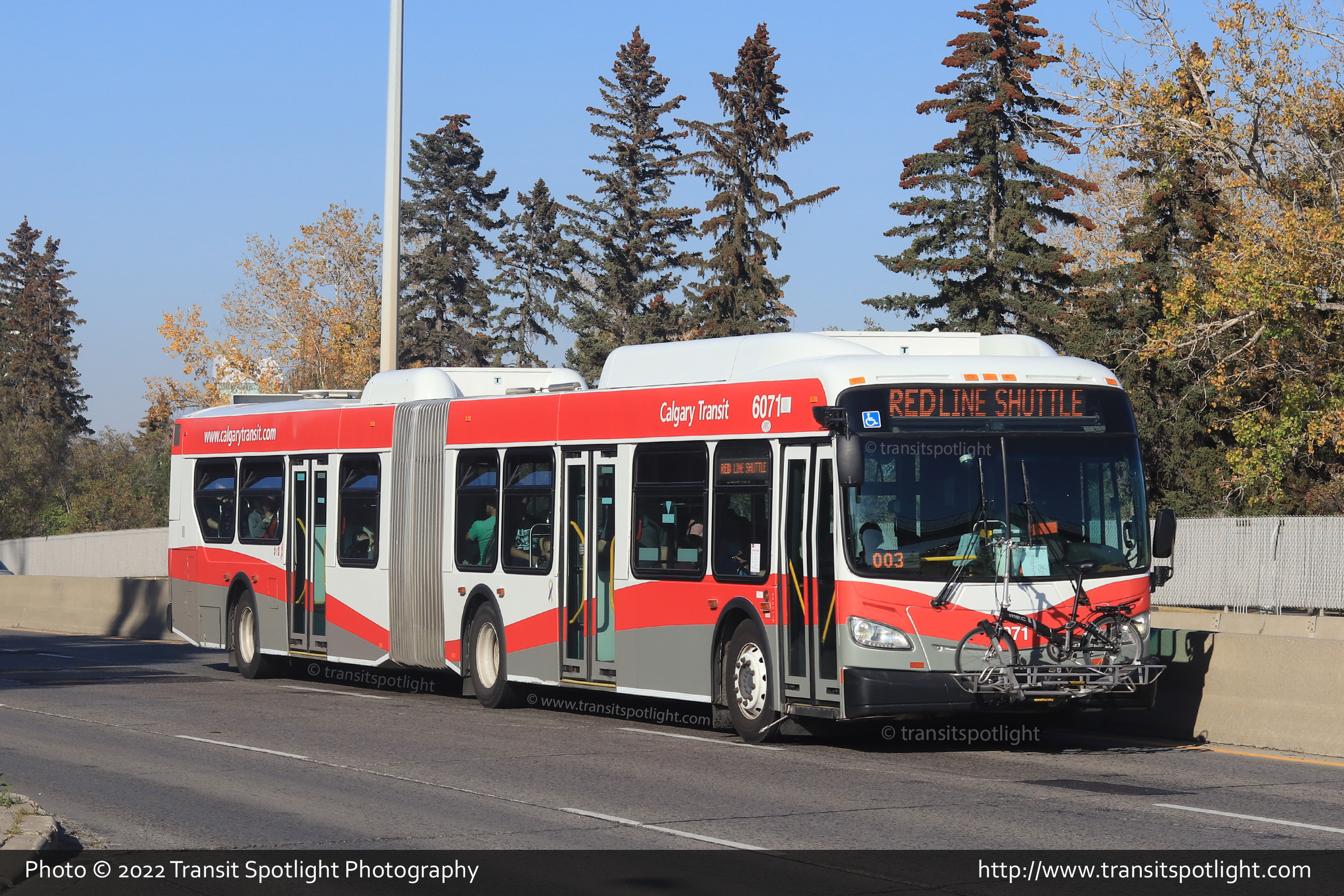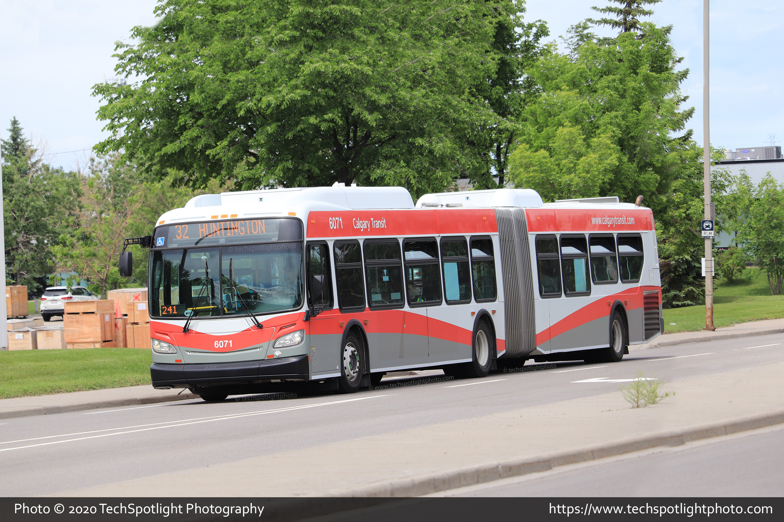 6071 is seen at 9 Street and 65 Avenue NE while working Route 32 Huntington. |