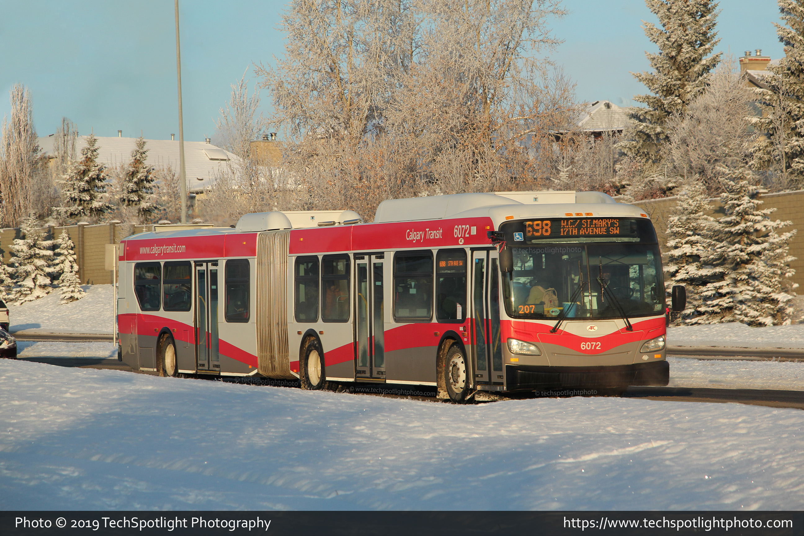 6072 is seen on 17 Avenue SW, west of Simcoe Blvd SW while starting a trip on Route 698 Western Canada & St. Mary's / 17 Avenue SW. |