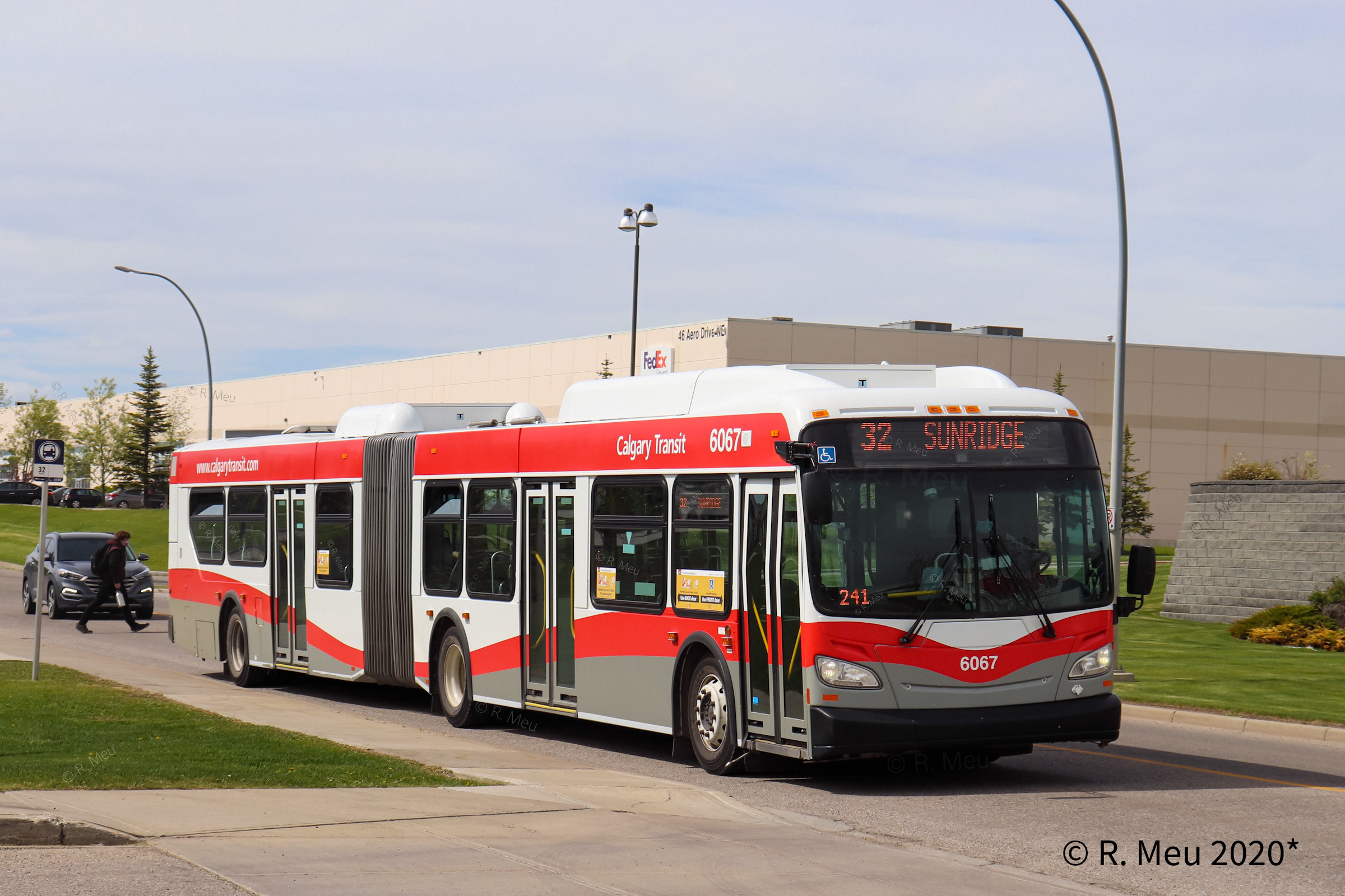 6067 is seen on Aero Drive at Aero Gate NE while working Route 32 Sunridge. Photo captured by R. Meu. |