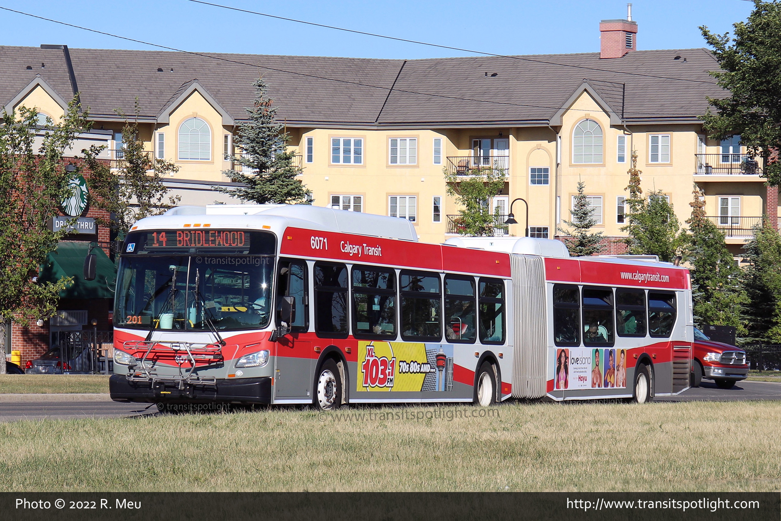 6071 is seen on 162 Avenue at Bridleridge Way SW while working Route 14 Bridlewood. |