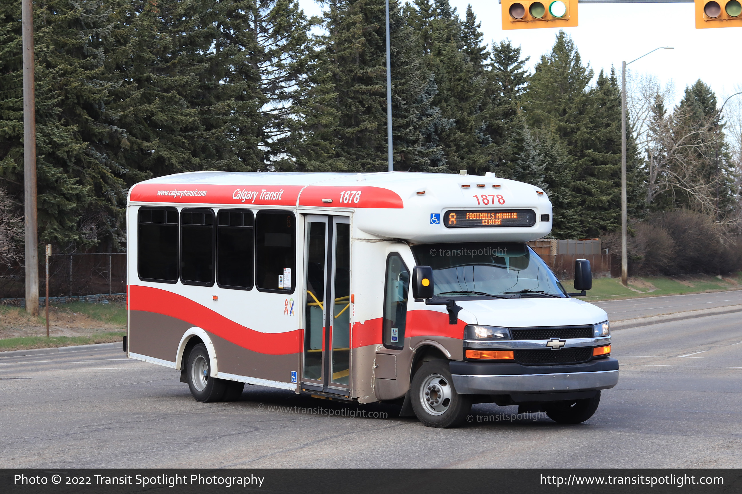 1878 is seen on 32 Avenue turning onto 39 Street NW while working Route 8 Foothills Medical Centre. |