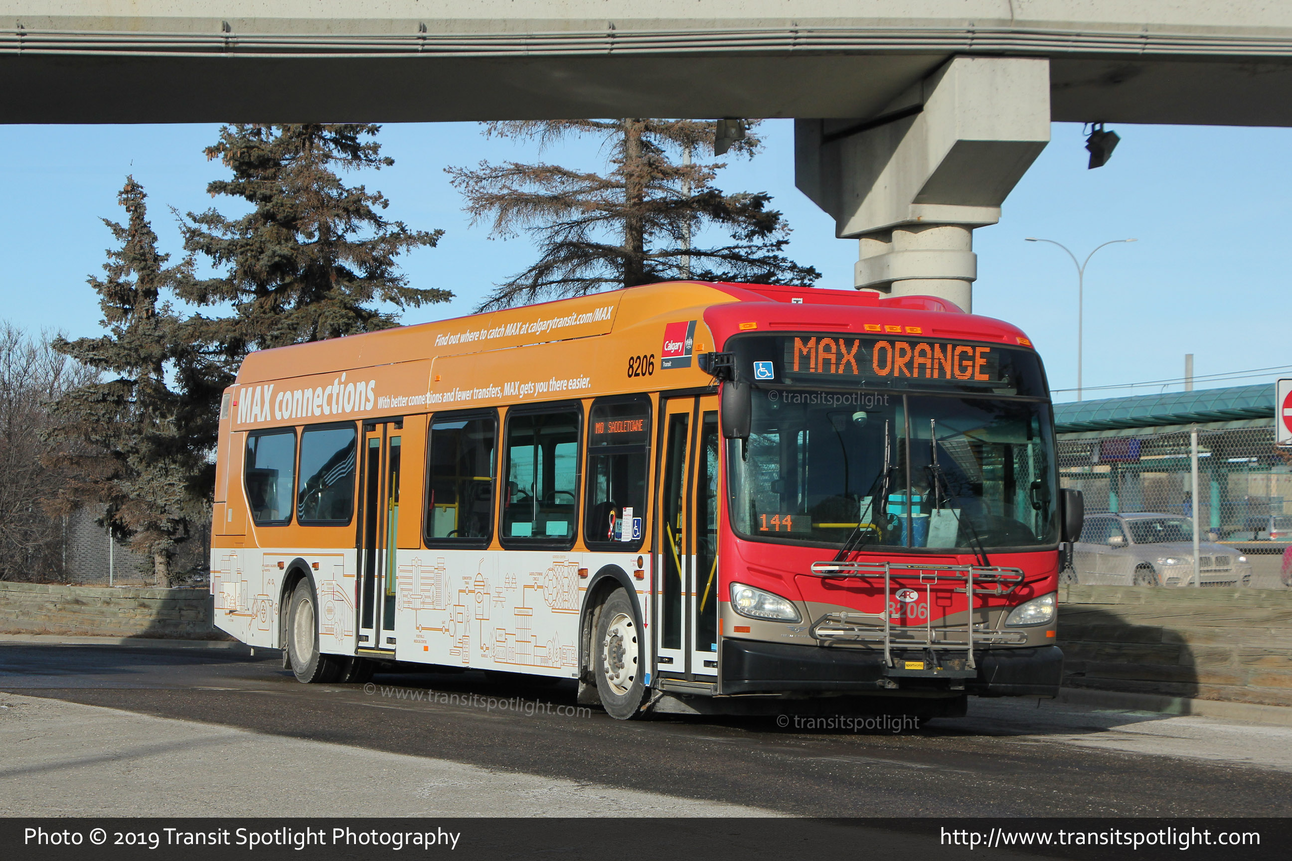 8206 (the special MAX Orange wrapped bus) is seen departing Brentwood LRT Station while working the MAX Orange to Saddletowne. |