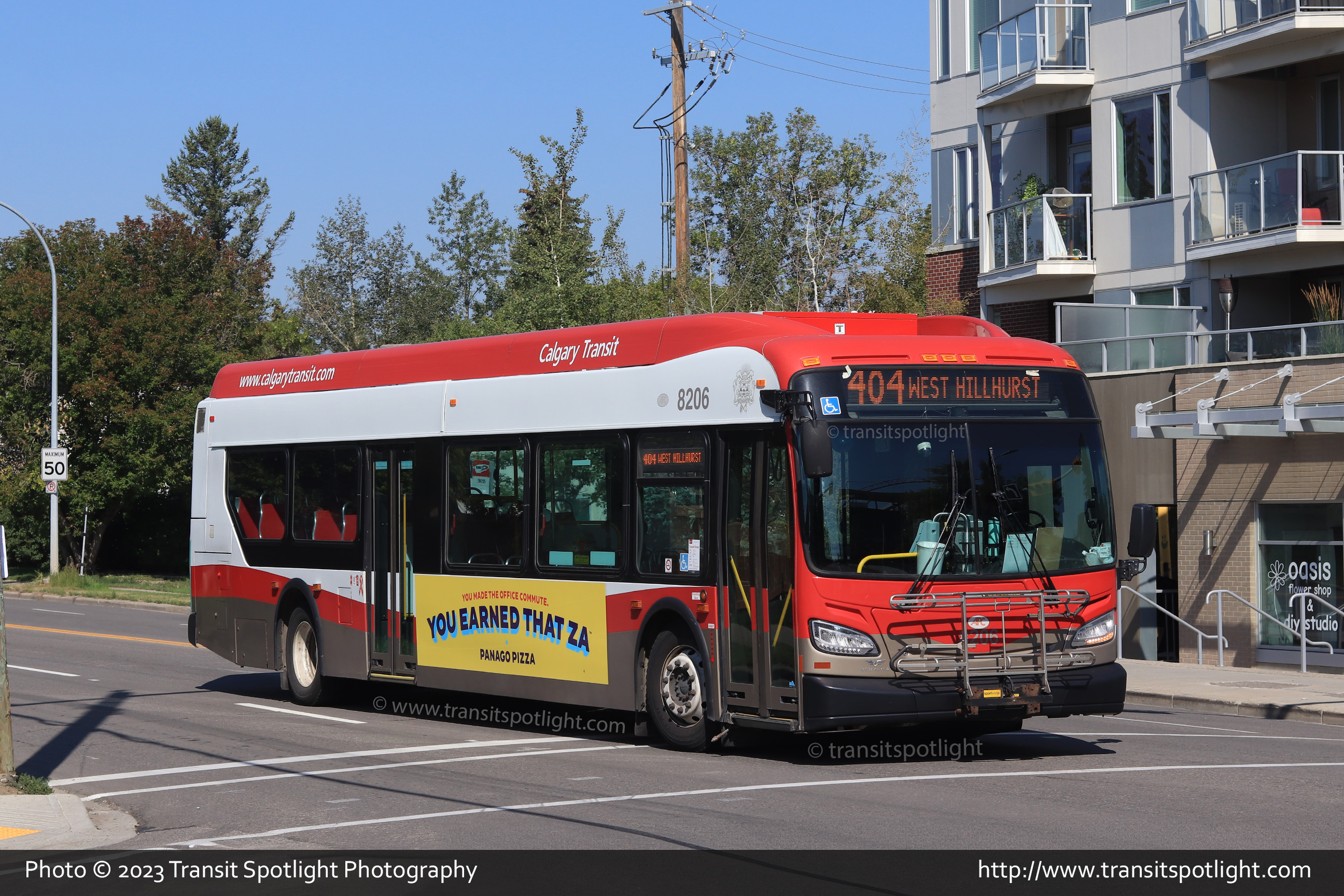 8206 is seen on Kensington Road at 19 Street NW while working Route 404 West Hillhurst. |