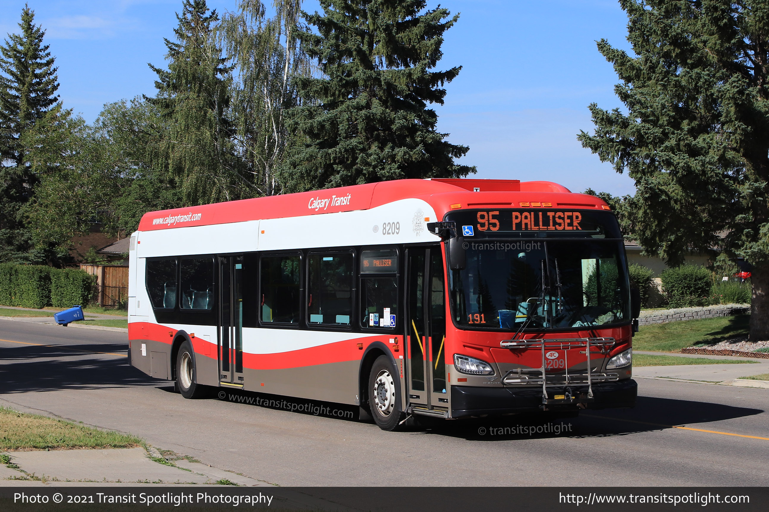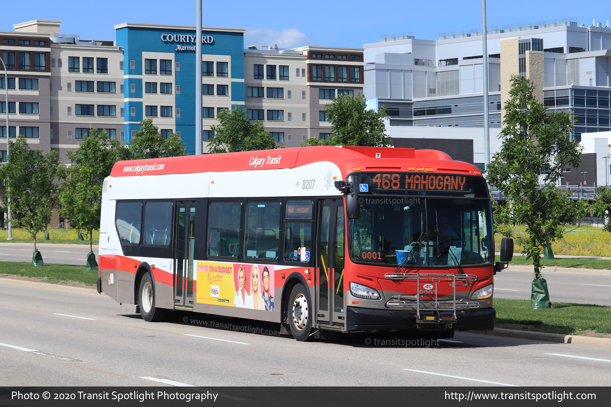 8210 is seen at the Calgary Zoo terminal in NE Calgary while working the Calgary Zoo CTrain disruption shuttle. The Calgary Zoo terminal is only used by Calgary Transit vehicles in the event of a CTrain disruption, and in this case it shuttled passengers between Bridgeland and the Calgary Zoo. |