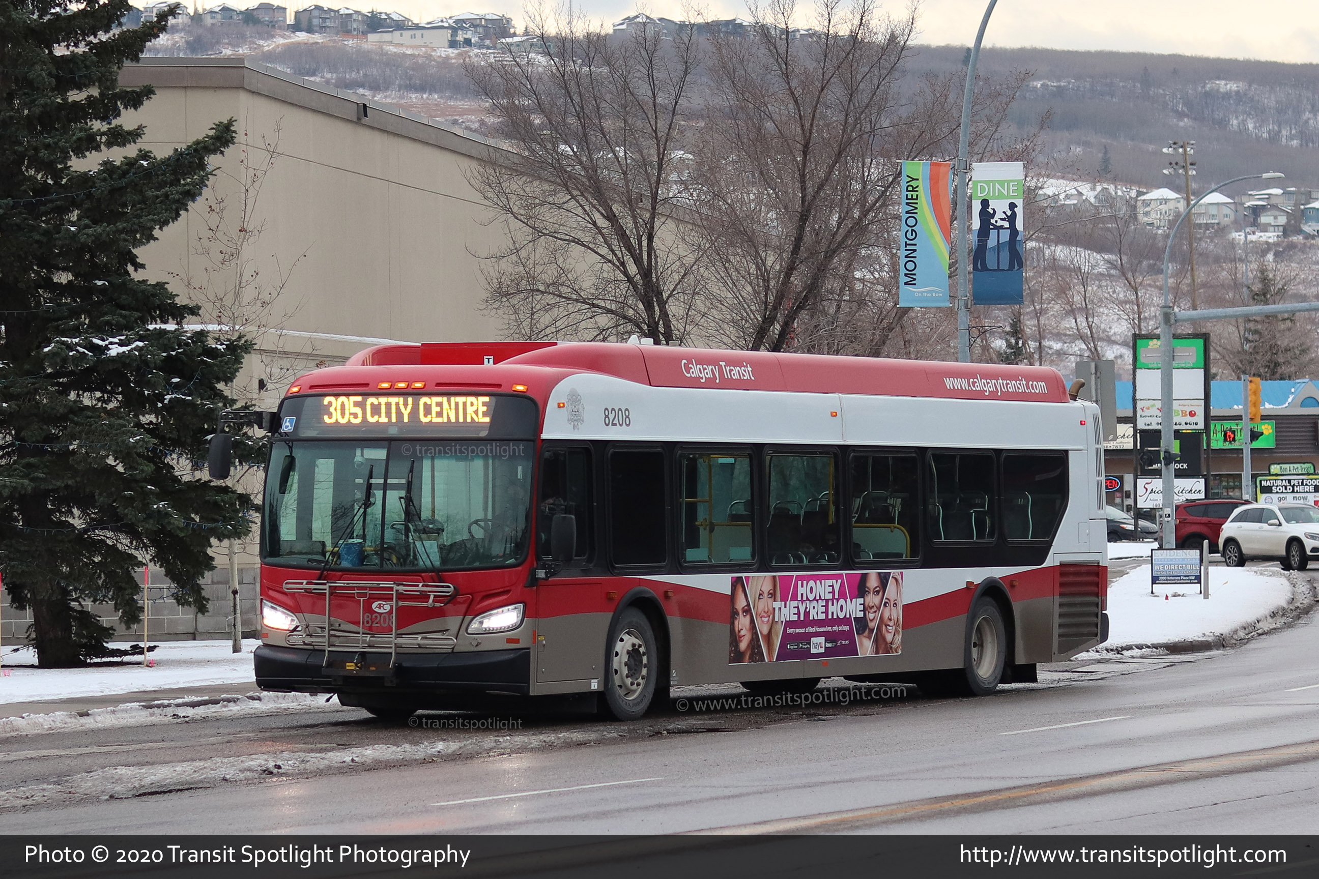 8208 is seen at Bowness Road and Home Road NW while working Route 305 BRT Bowness to City Centre. |