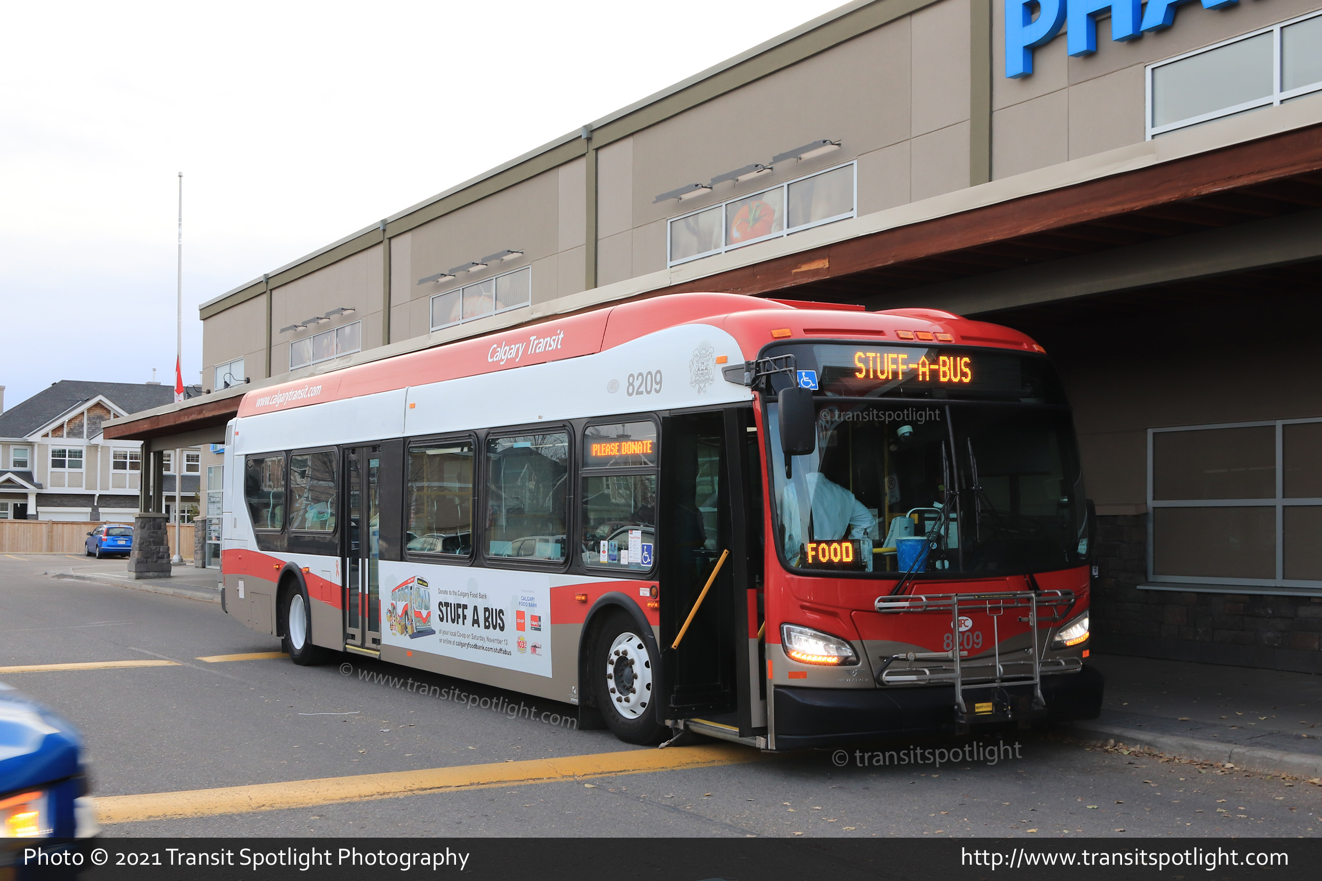 8209 is seen parked at the West Springs Co-op (85 Street and 9 Avenue SW) while working the annual stuff-a-bus charter. |