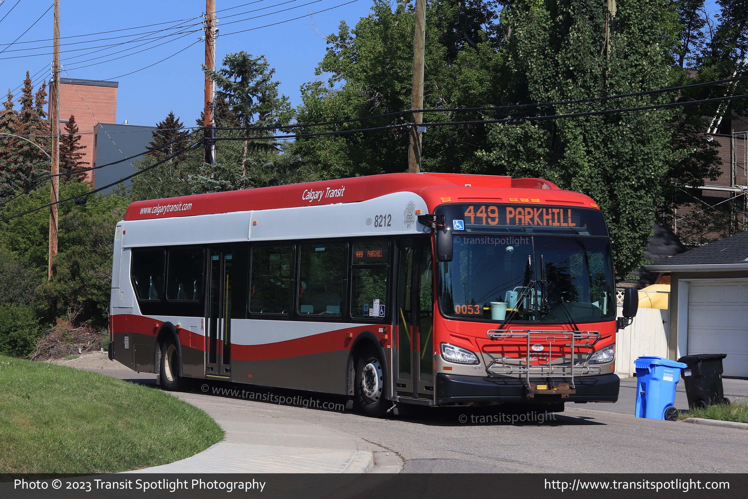 8212 is seen on 34 Avenue at 3 Street SW while working Route 449 Parkhill. |