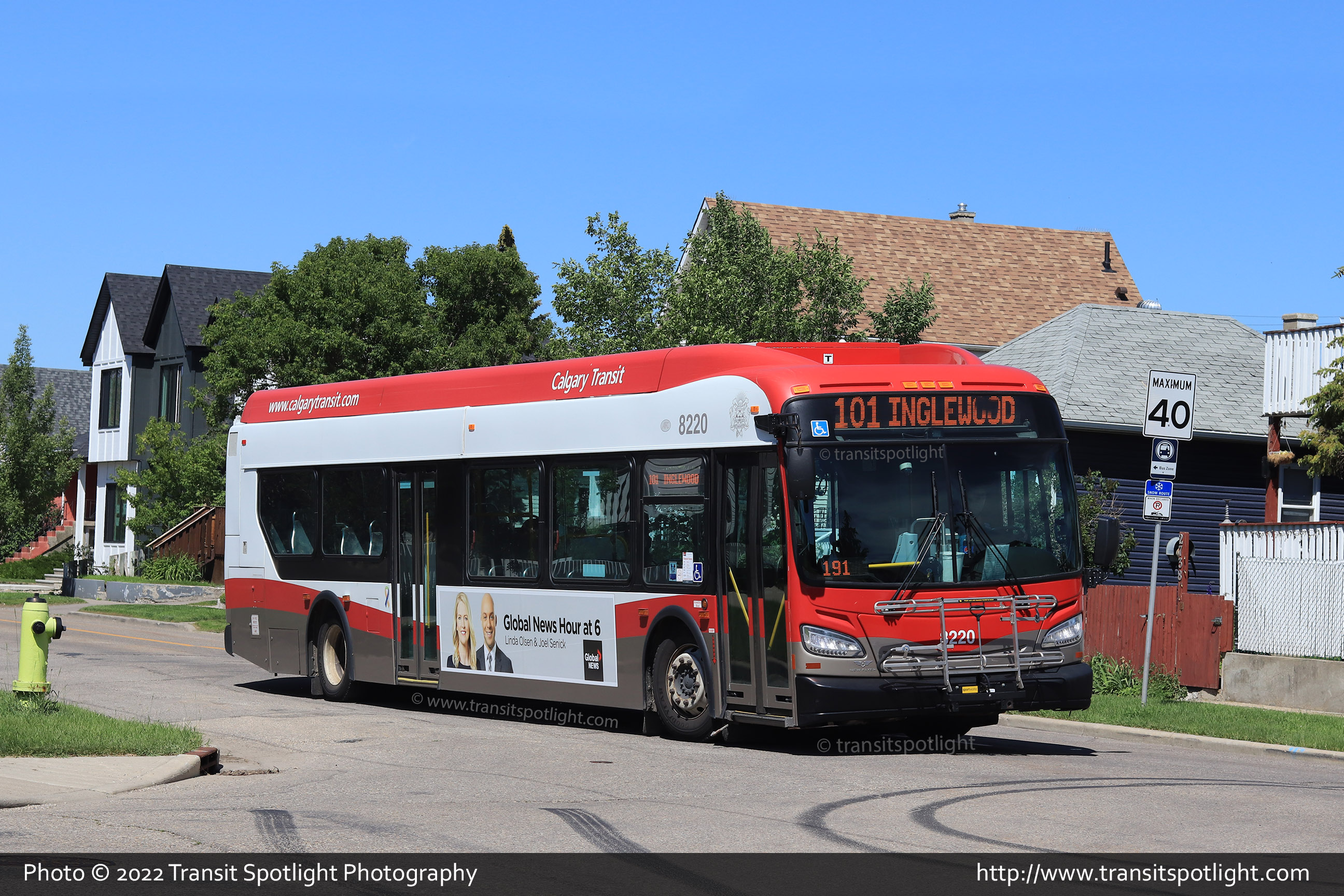 8220 is seen turning from 17 Street and 28 Avenue SE while working a community shuttle piece on Route 101 Inglewood. |