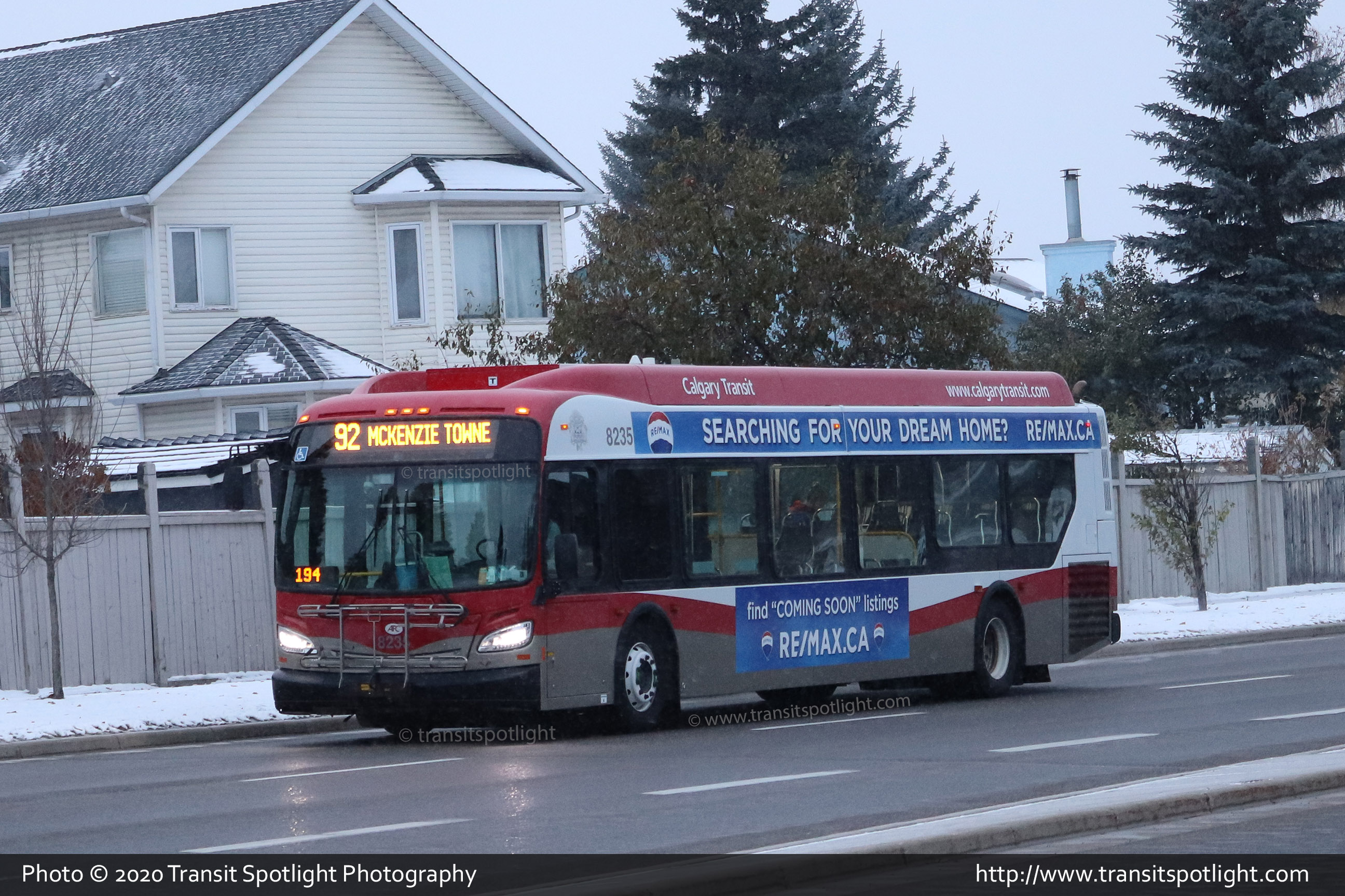 8235 is seen at Douglasdale Blvd and Douglas Woods Drive SE while working a community shuttle key on Route 92 McKenzie Towne. |