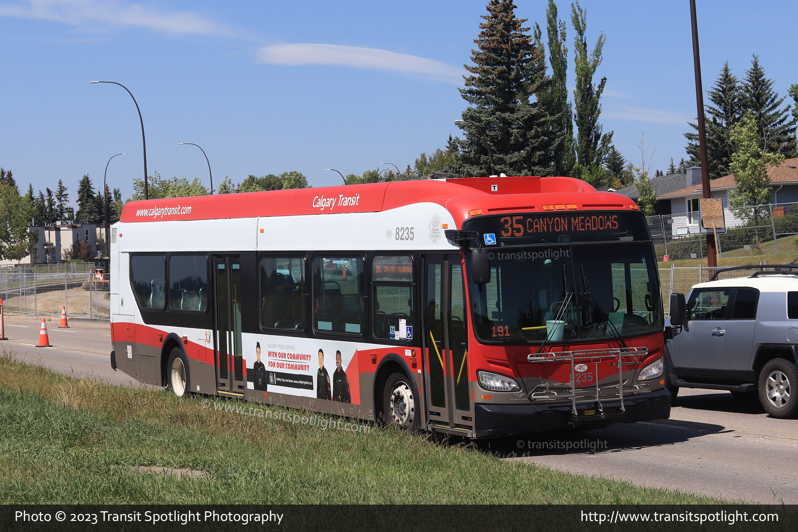 8235 is seen on Canyon Meadows Drive at 6 Street SW while working Route 35 Canyon Meadows. |