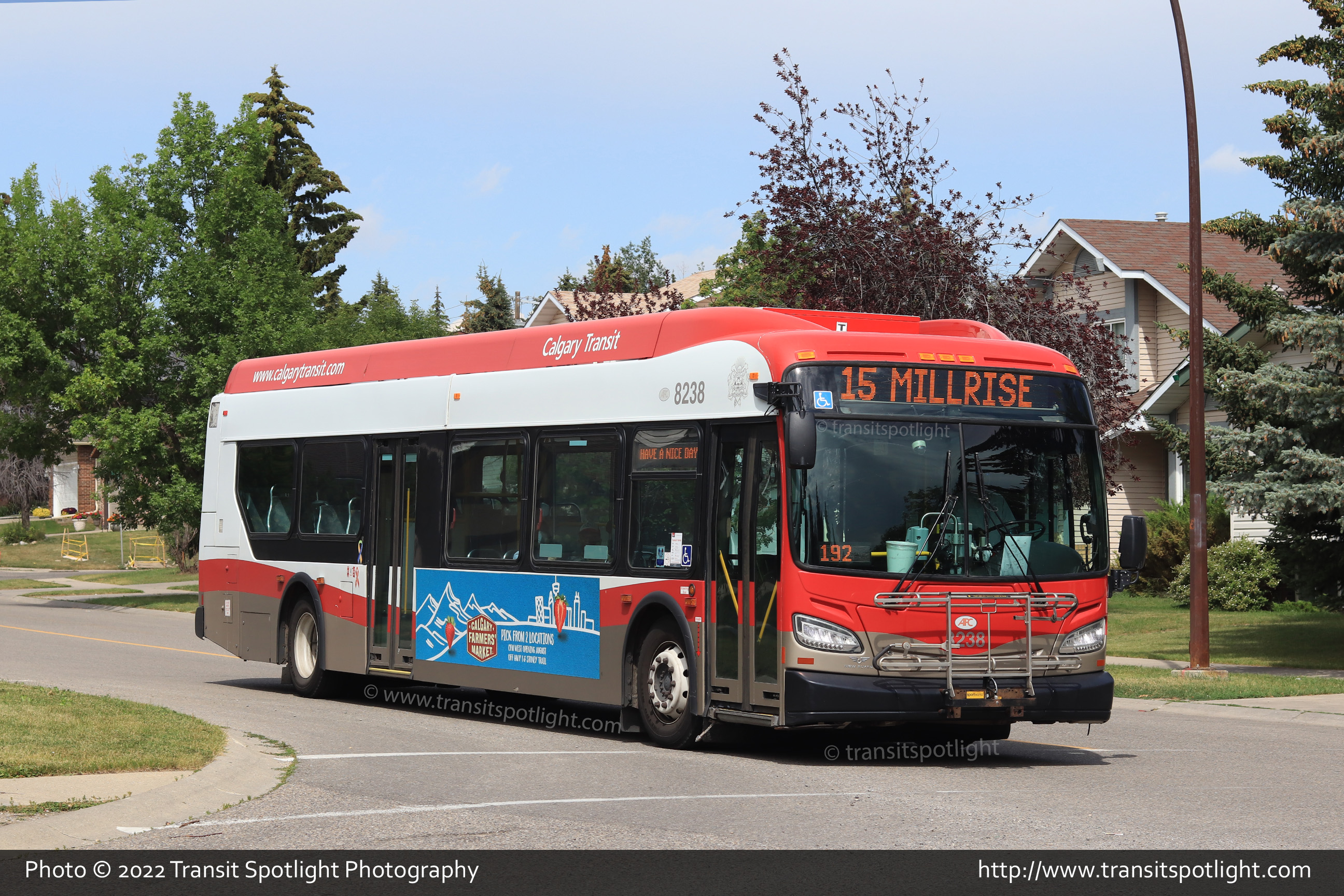 8238 is seen on Millrise Drive at Millbank Drive SW while working Route 15 Millrise. |