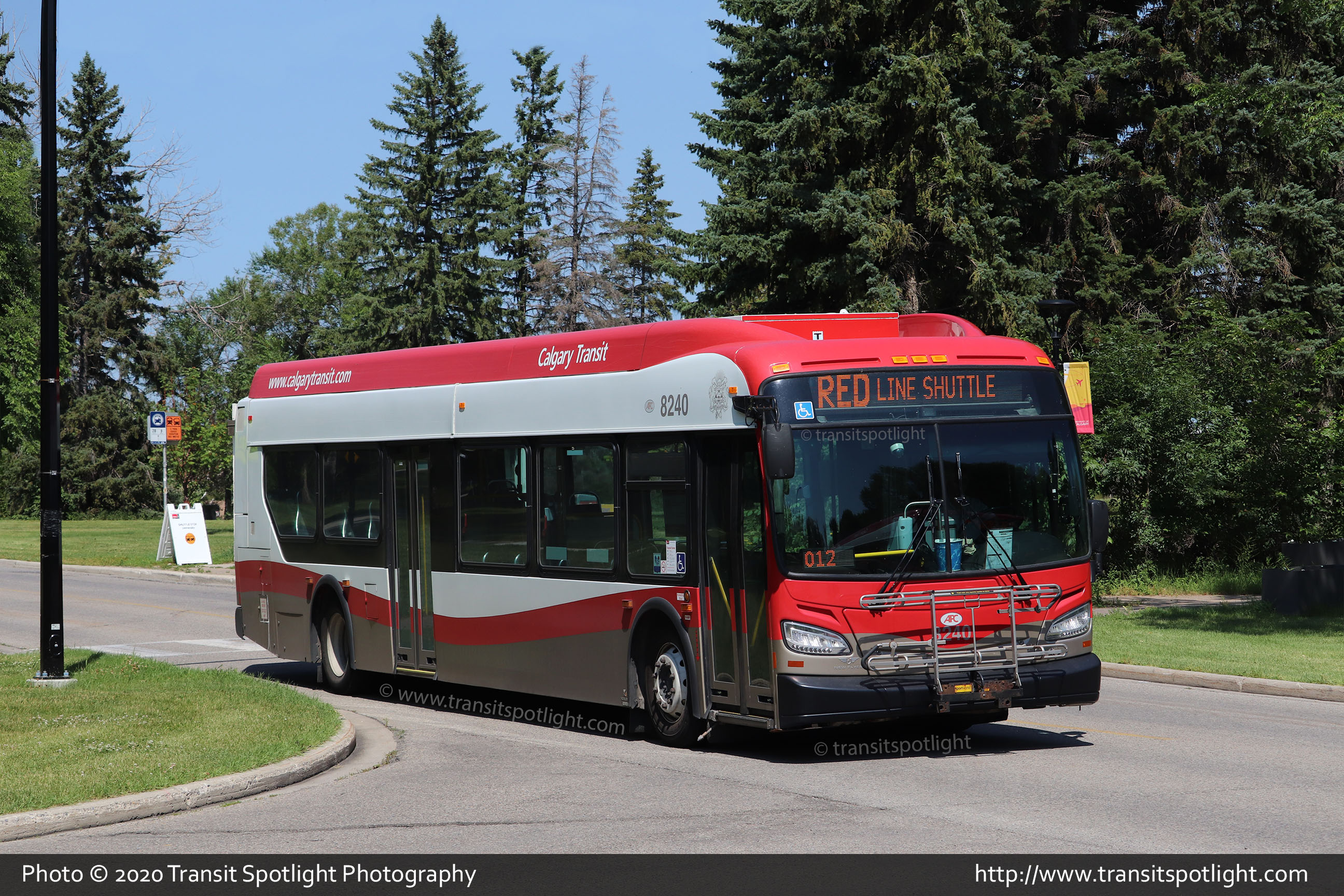 8240 is seen inside the University of Calgary campus while working a Red Line CTrain shuttle to Banff Trail LRT Station. |