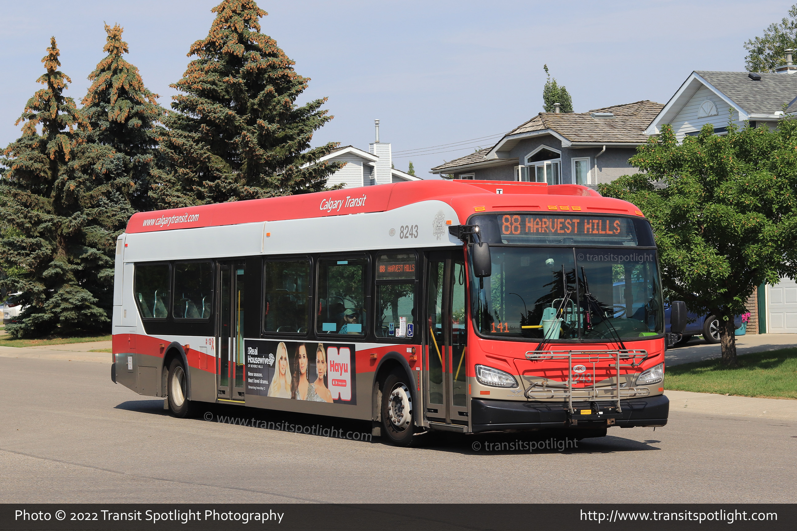 8243 is seen on Harvest Hills Drive at Harvest Hills Way NE while working Route 88 Harvest Hills. |