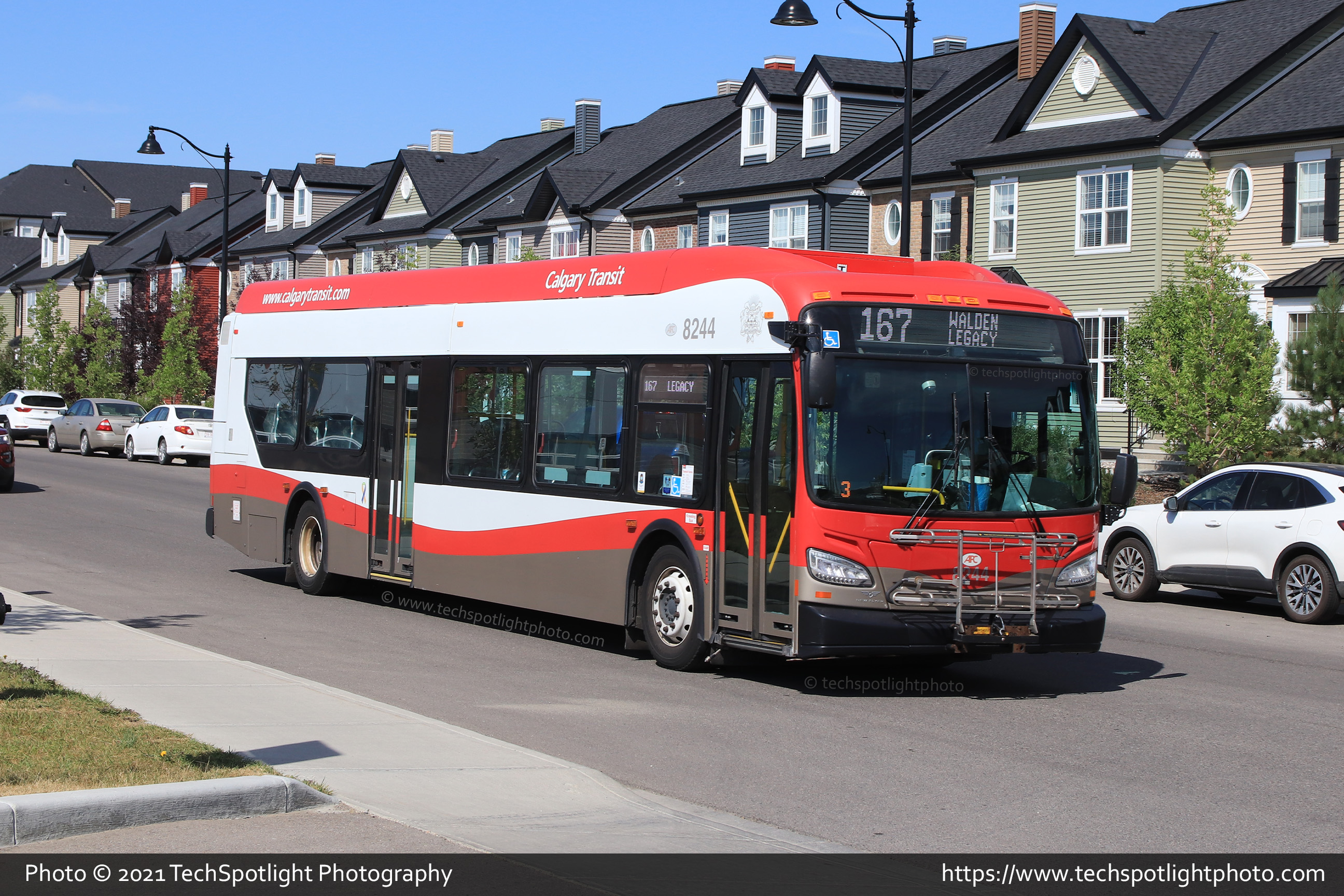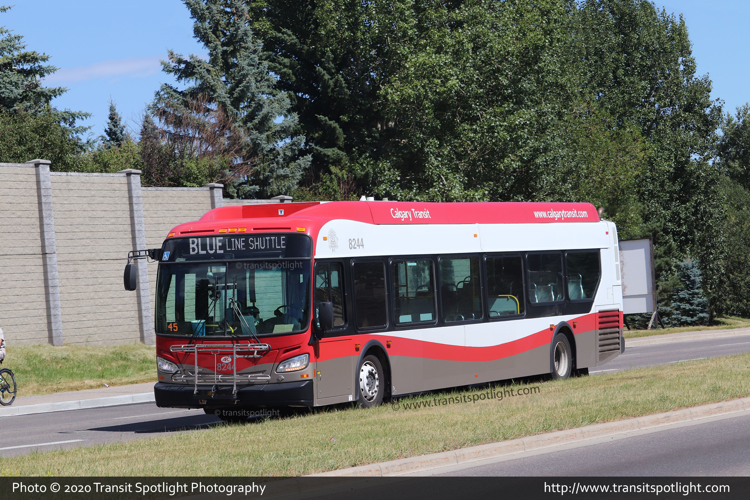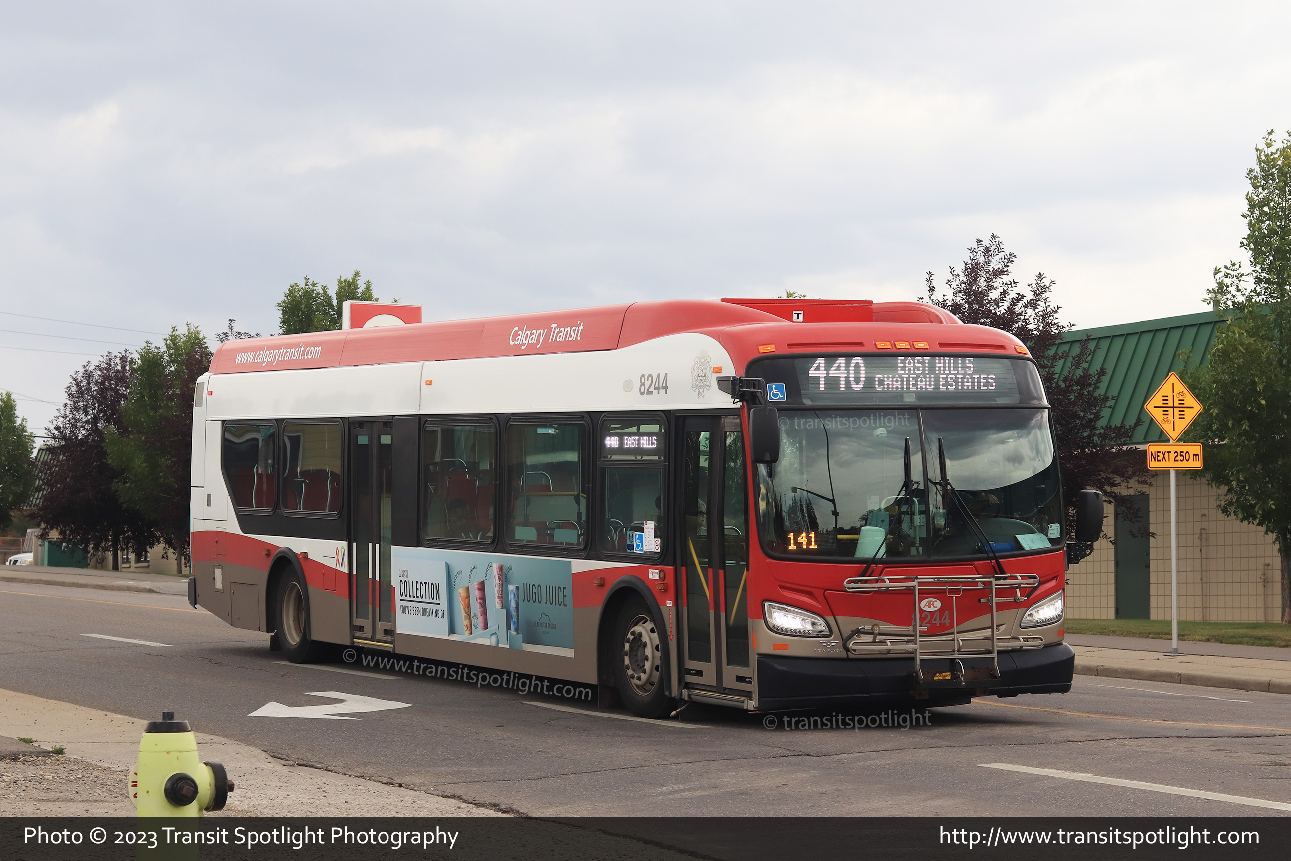 8244 is seen on 28 Street at 17 Avenue SE while working Route 440 East Hills / Chateau Estates. |