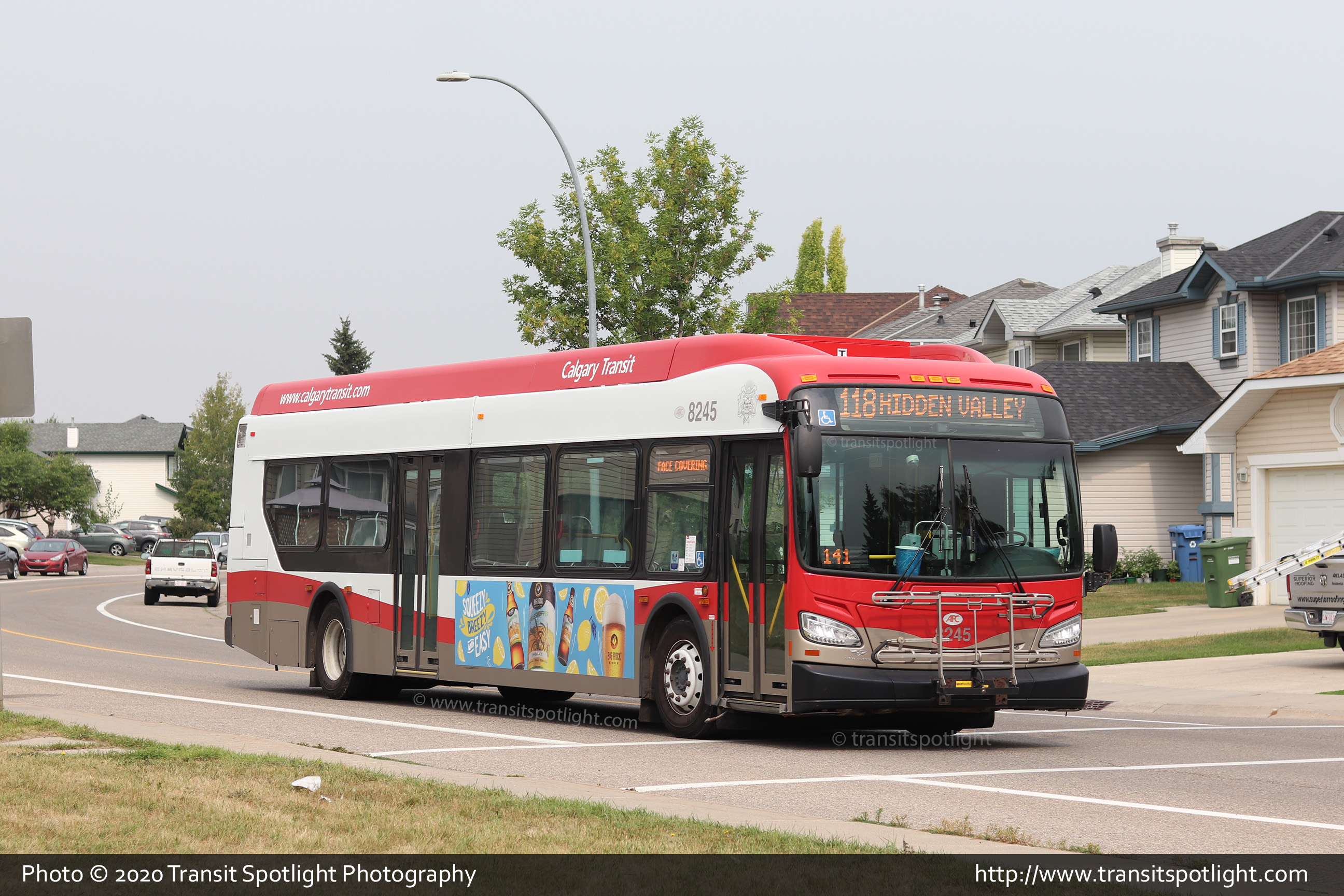 8245 is seen at Hidden Valley Drive and Hidden Valley Green NW while working a community shuttle key on Route 118 Hidden Valley. |