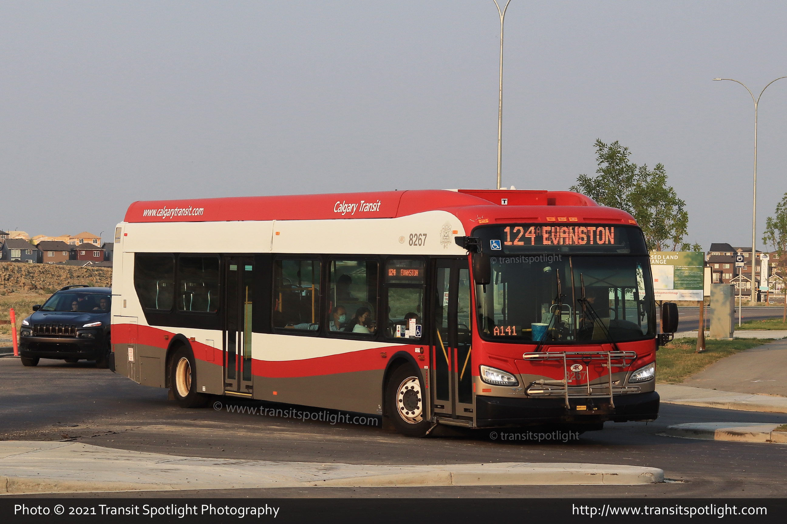 8267 is seen on 144 Avenue, turning onto Carrington Blvd NW while working a community shuttle key on Route 124 Evanston. |