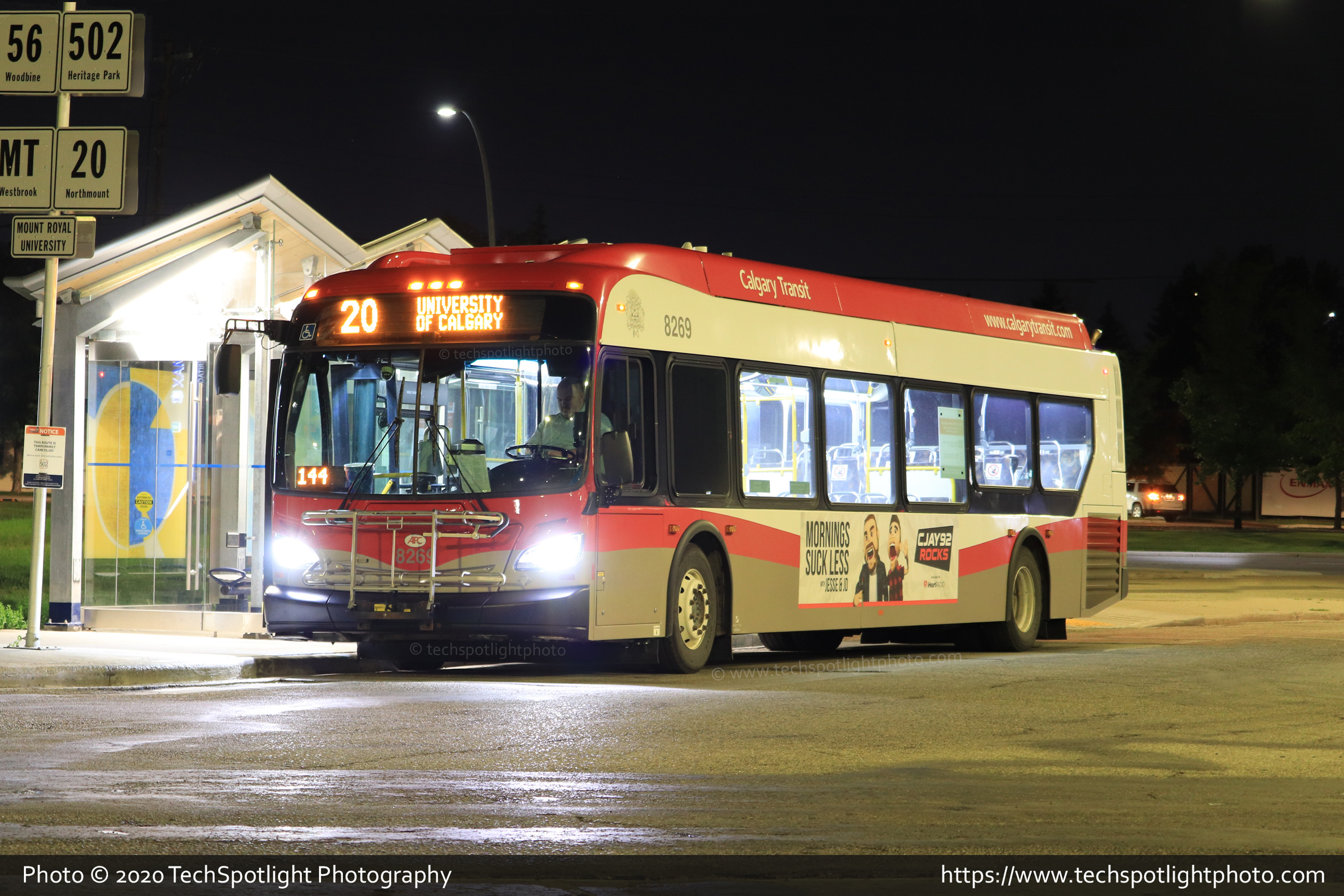 8269 is seen resting at Heritage LRT Station while working a short trip on Route 20 University of Calgary. |