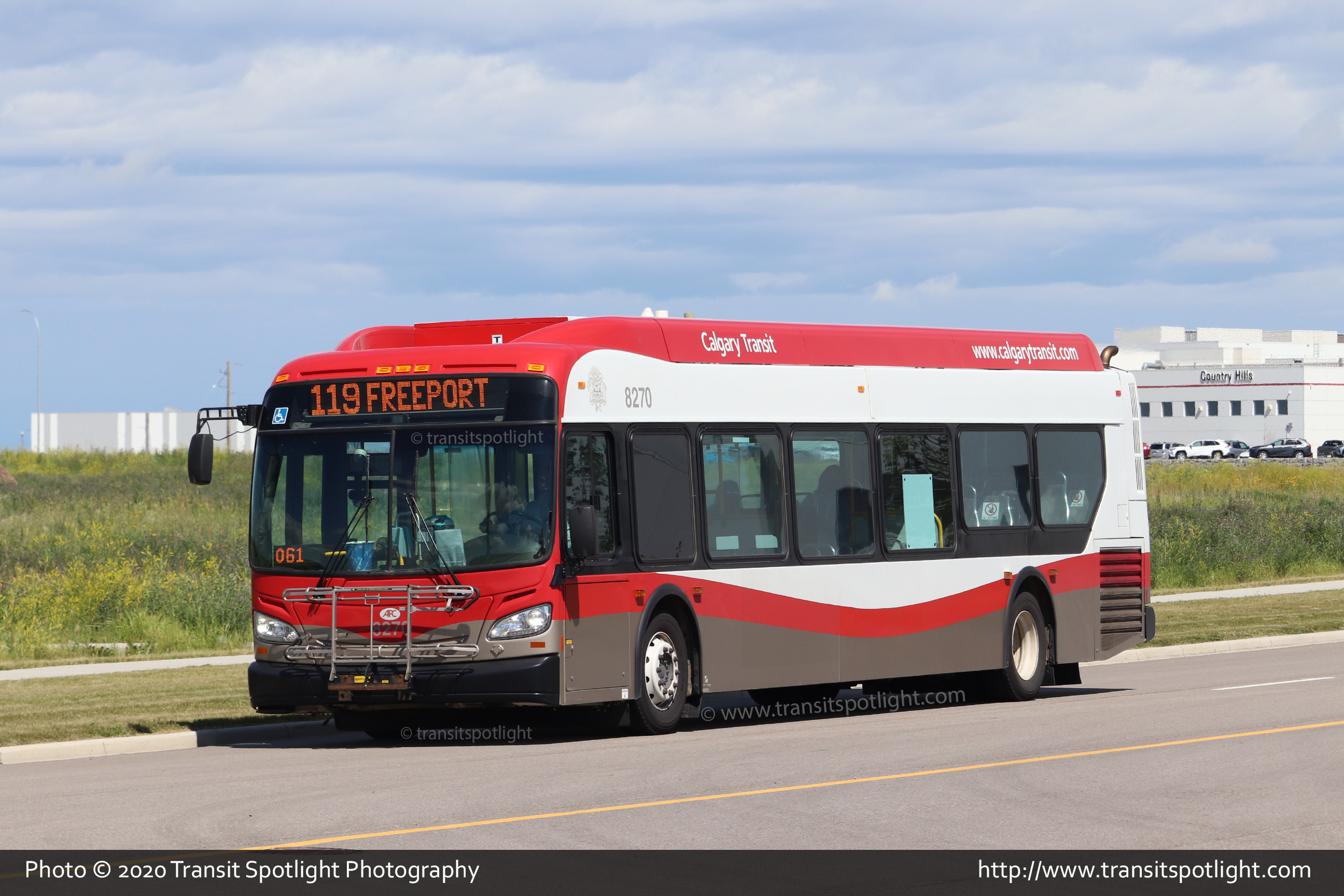 8270 is seen travelling along Freeport Blvd NE (16 Street NE) while working Route 119 Freeport. |