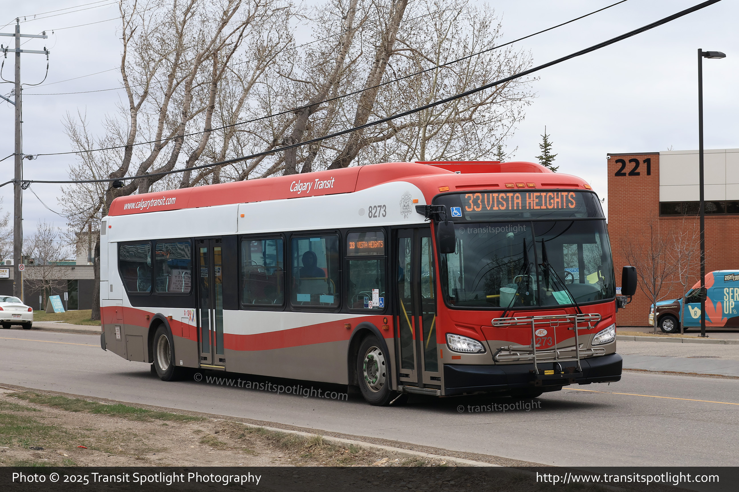 8273 is seen on 19 Street SE, south of Centre Avenue East, while working Route 33 Vista Heights. |