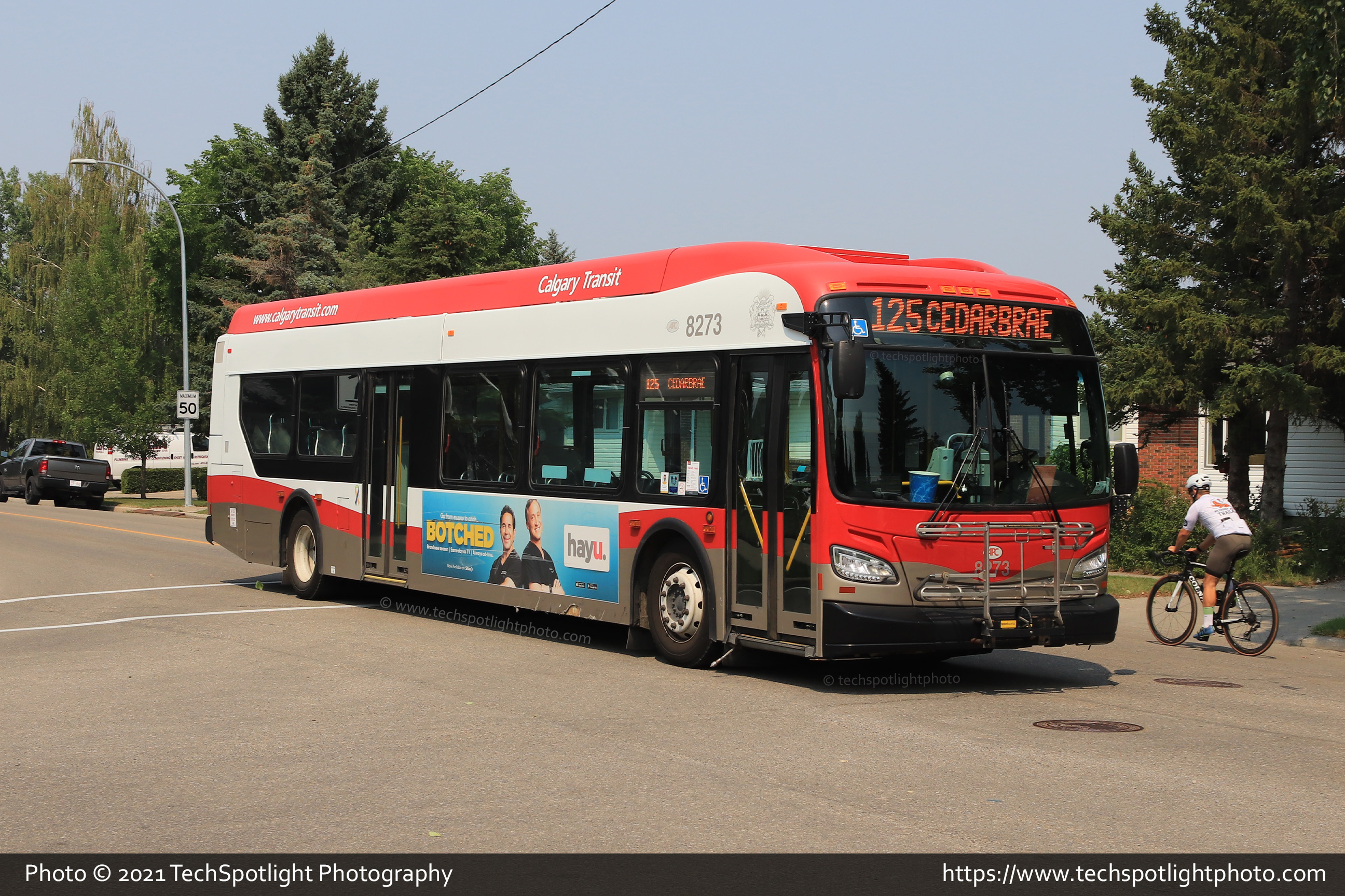 8273 is seen on the north end of Lake Fraser Drive SE while working Route 44 Deer Ridge. |