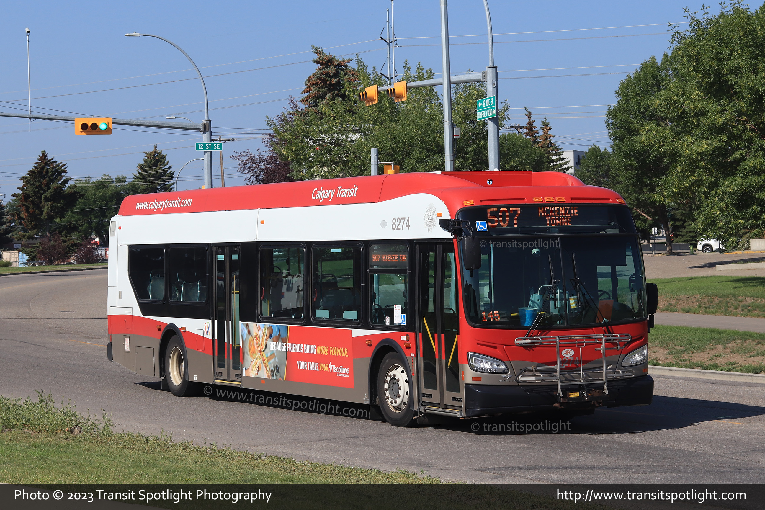 8274 is seen on 42 Avenue at 12 Street SE while working Route 507 Stampede SE Express. |