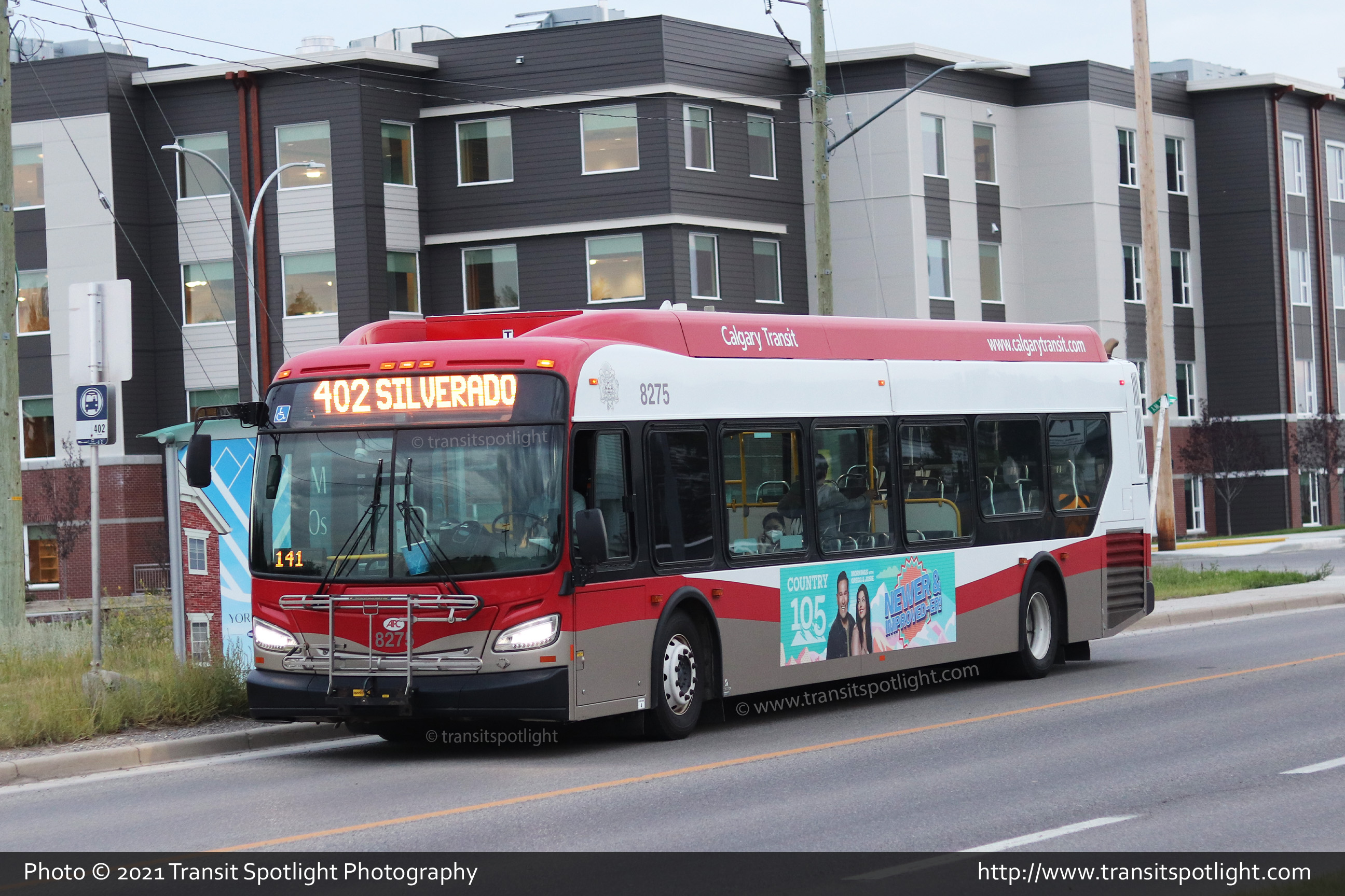 8275 is seen at Southland Drive and Blackfoot Trail SE while working Route 106 Deerfoot Meadows. |