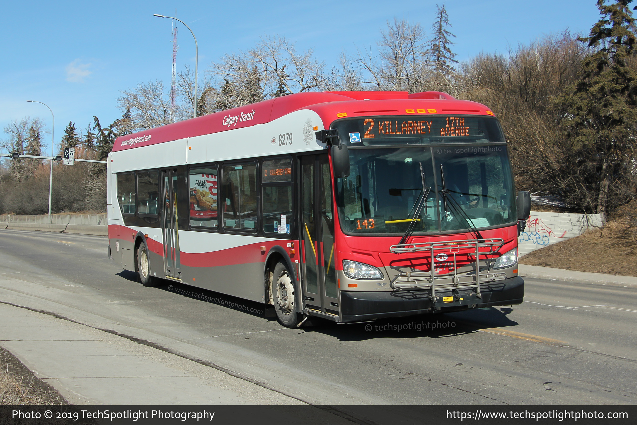 8279 is seen at Centre St and Samis Road North while working Route 2 Killarney 17 Avenue SW. |