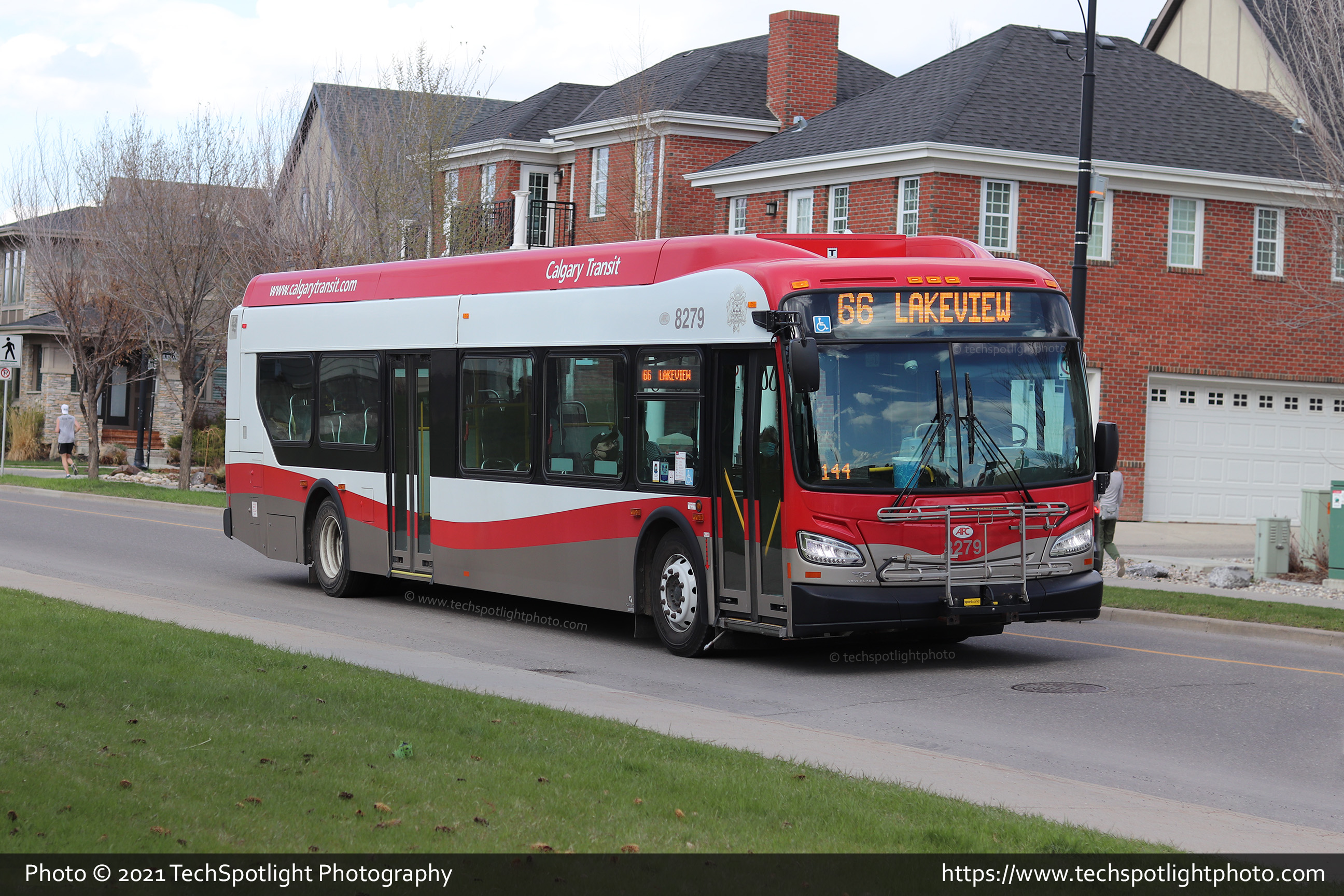 8279 is seen at Sarcee Road and Mermansk Way SW while working Route 66 Lakeview. |