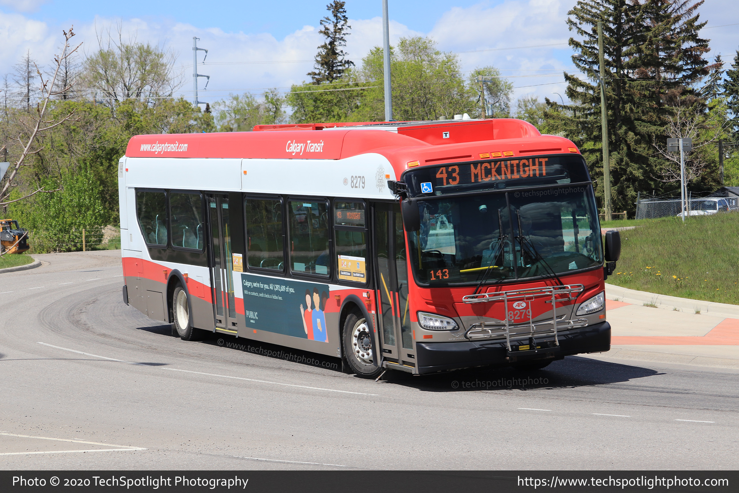 8279 is seen looping around the roundabout at 24 Street and 86 Avenue SE while working Route 43 McKnight. |