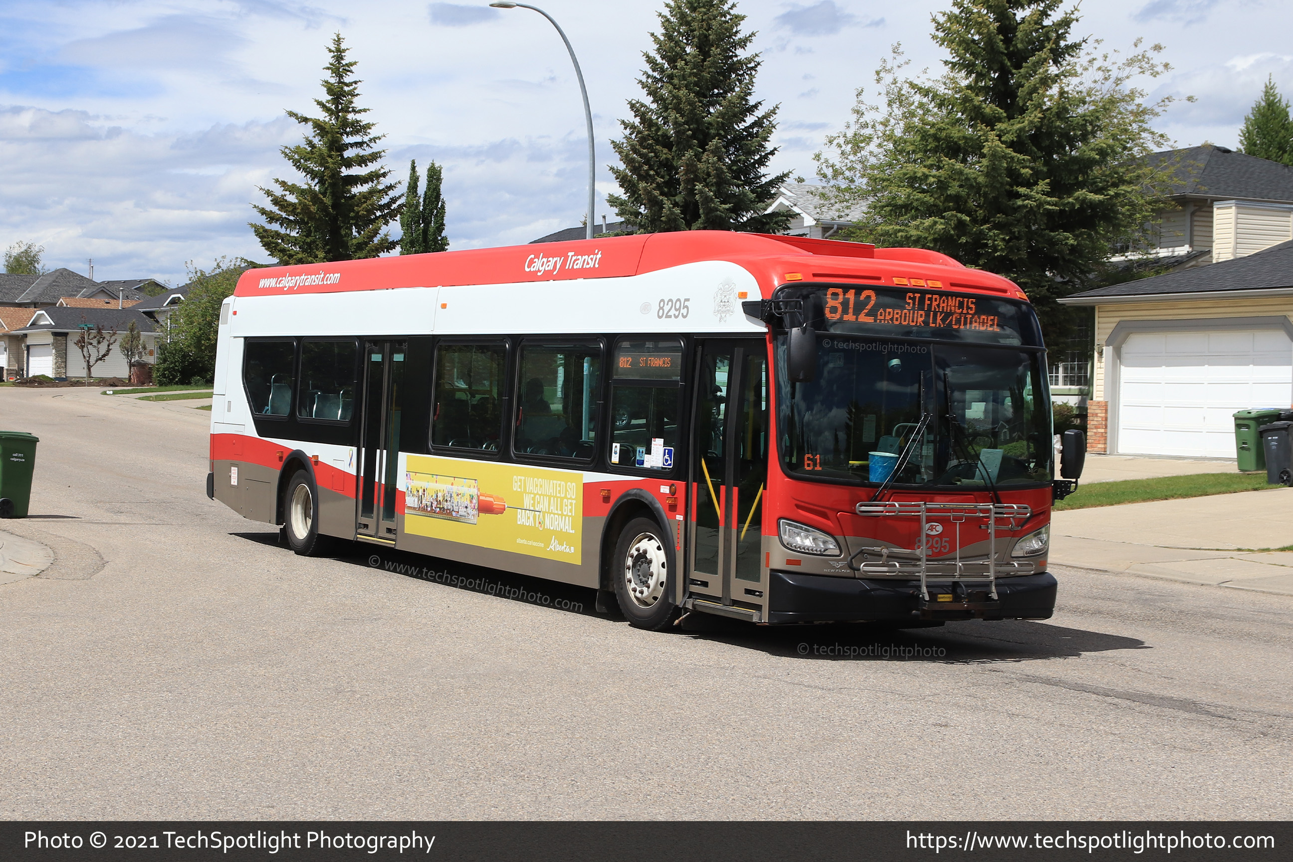 8295 is seen at Citadel Drive and Citadel Pass Crescent NW while working Route 812 St. Francis / Arbour Lake & Citadel. |