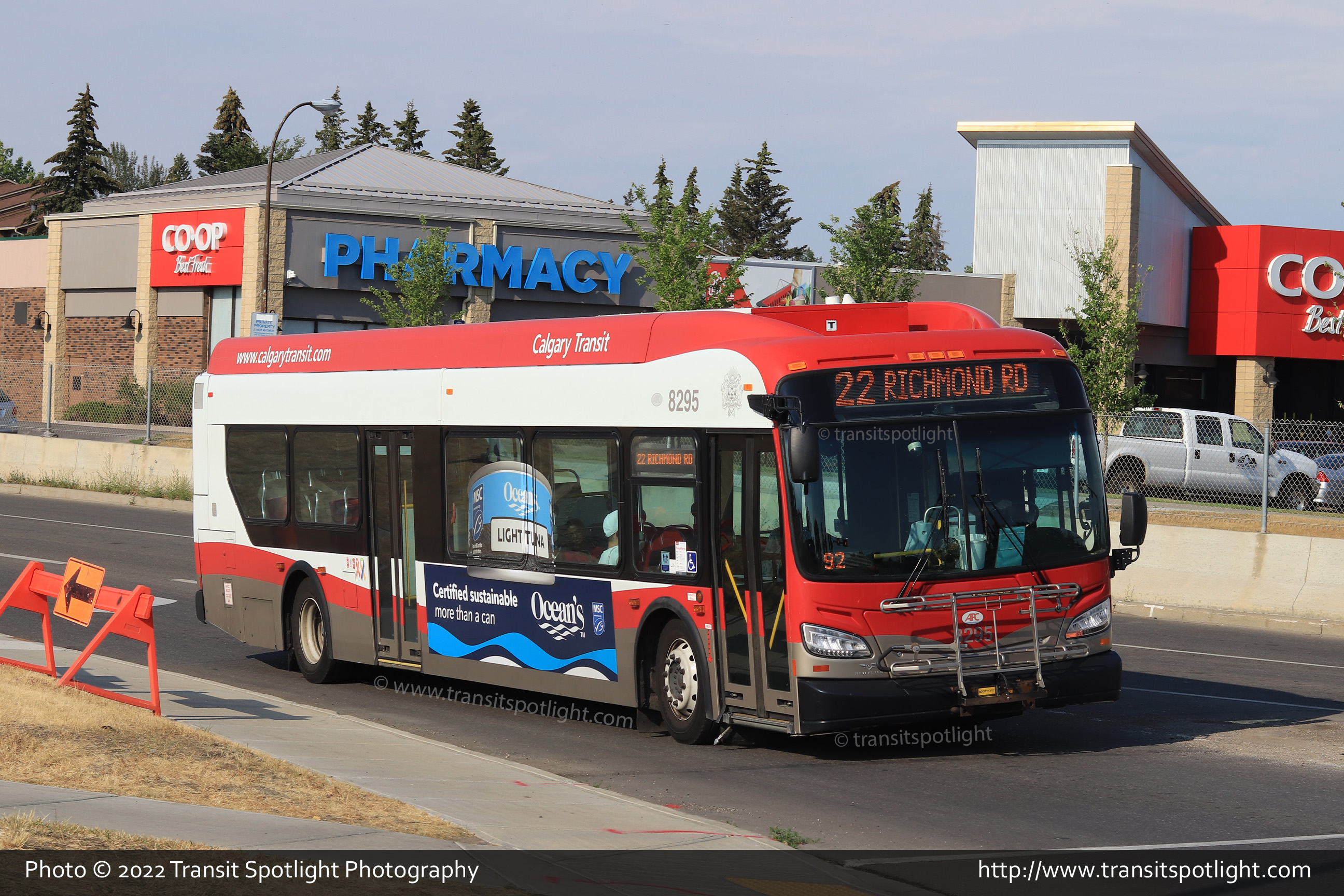 8295 is seen departing Richmond Terminal in SW Calgary while working Route 22 Richmond Road SW. |
