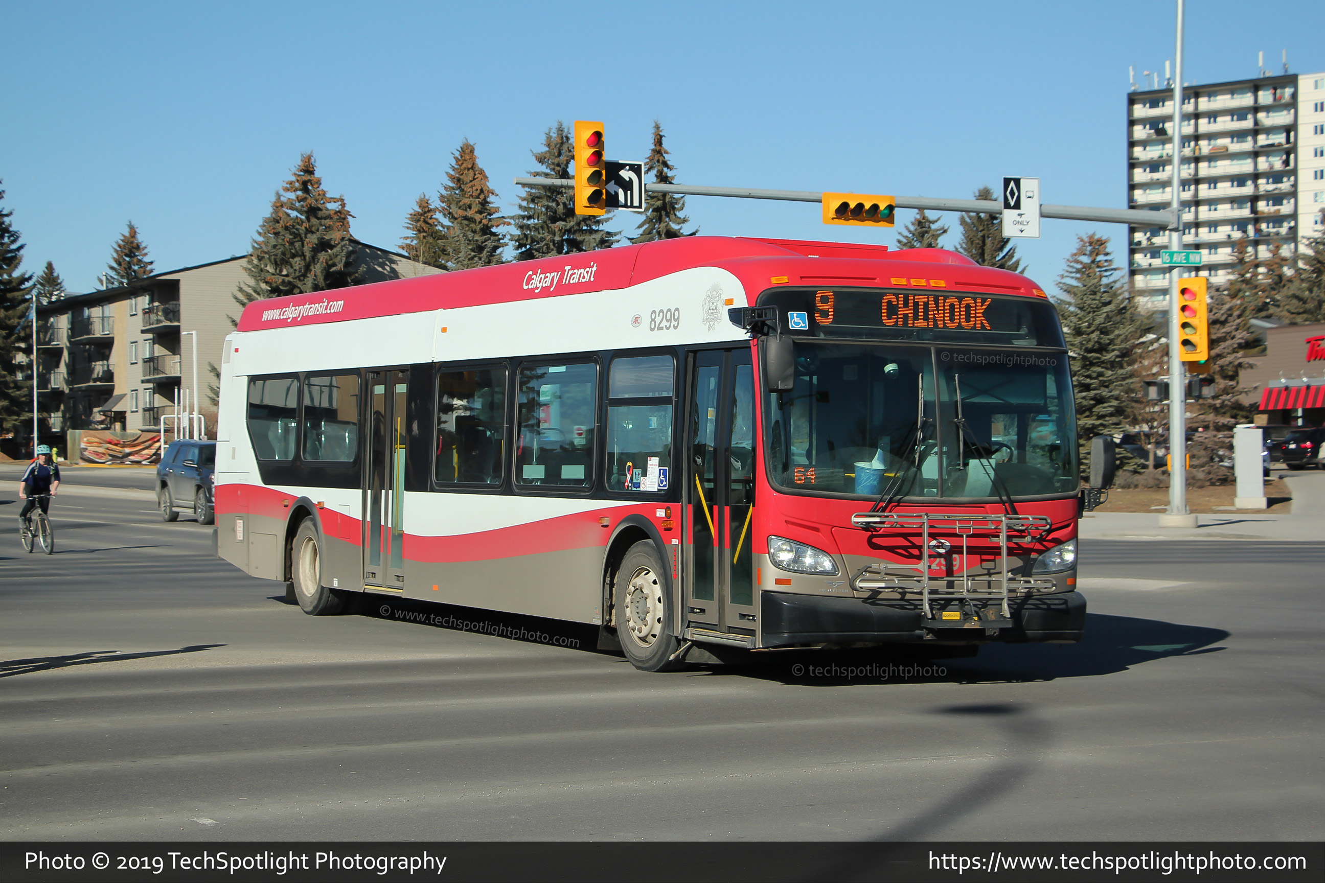 8299 is seen at 29 Street and 16 Avenue NW while working Route 9 Chinook. |