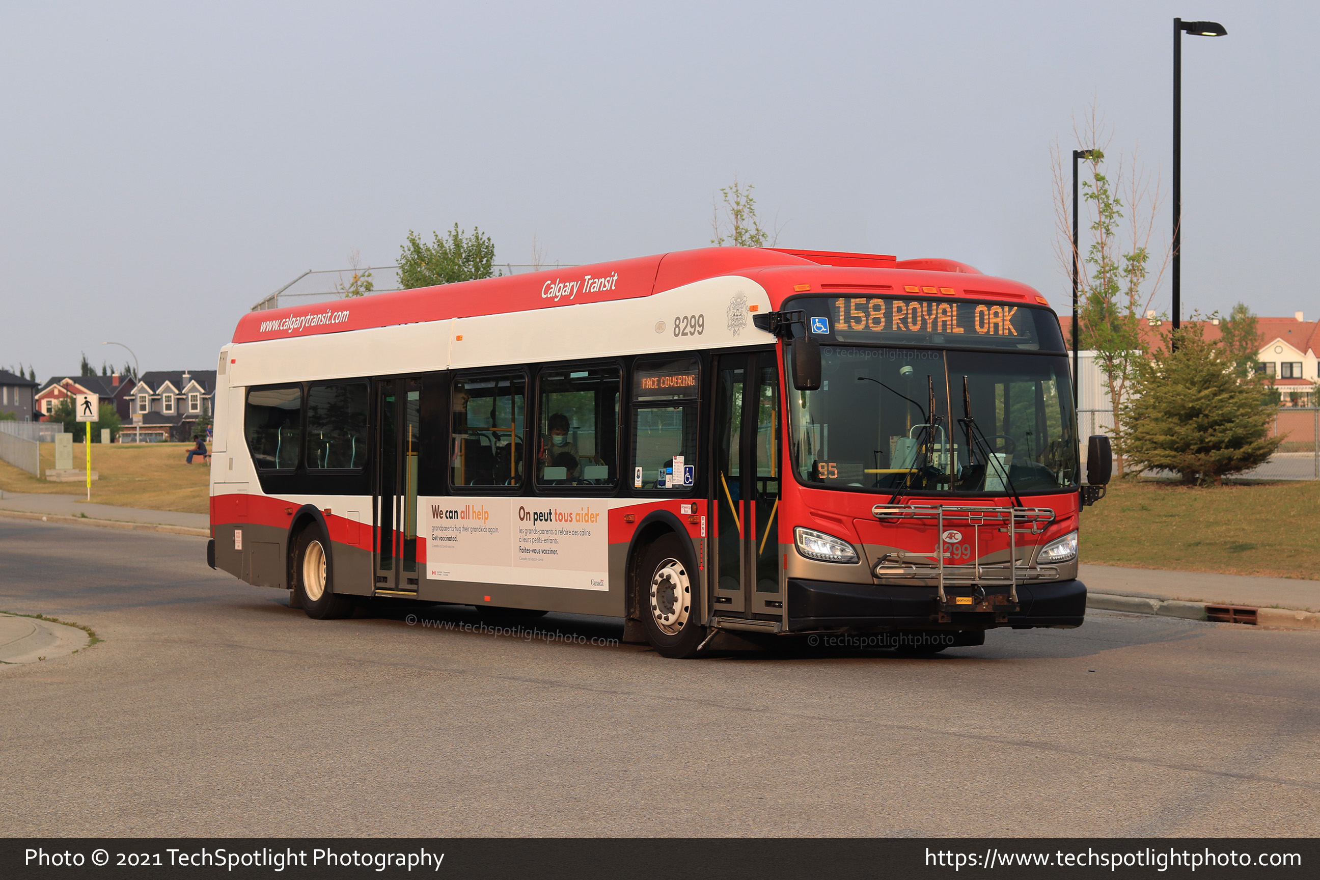 8299 is seen at Royal Oak Way and 300 Royal Oak Mews NW while working a community shuttle key on Route 158 Royal Oak. |