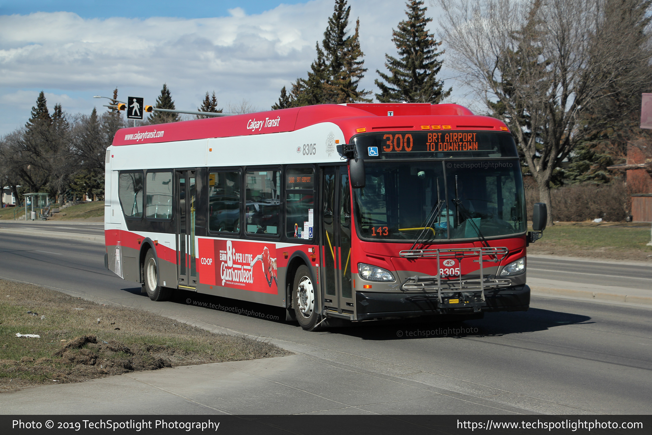 8305 is seen at Centre Street and 68 Avenue N while working Route 300 BRT Airport (to City Centre) |