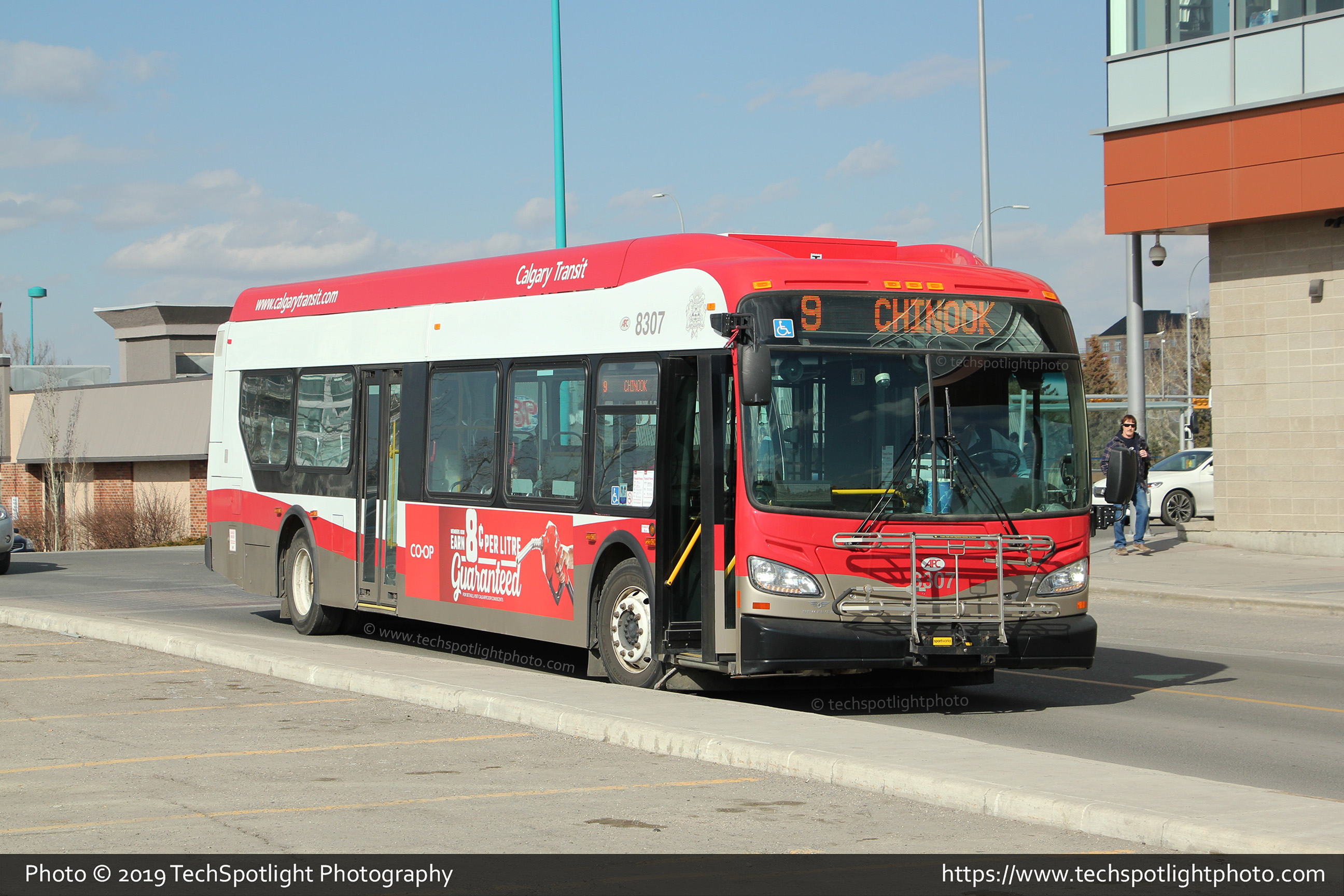 8307 is seen departing Westbrook LRT Station while working Route 9 Chinook. |
